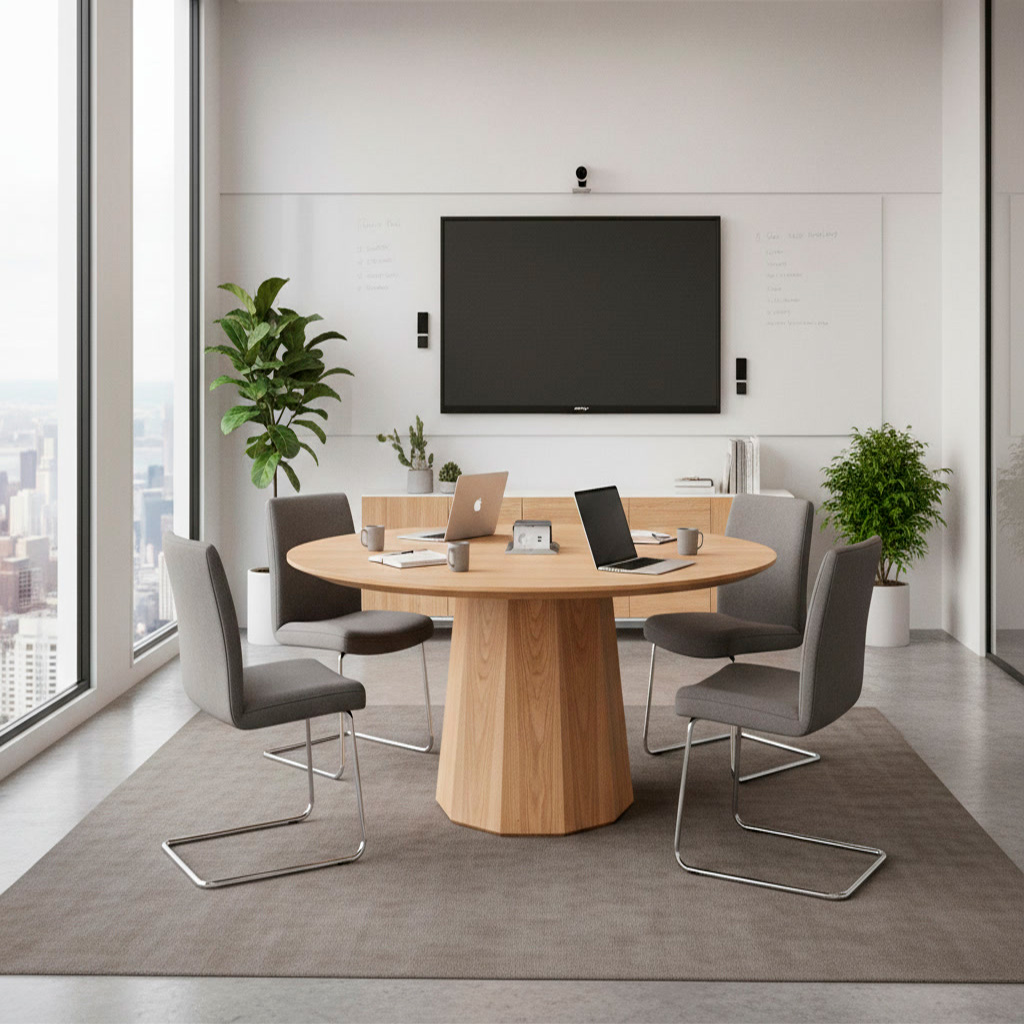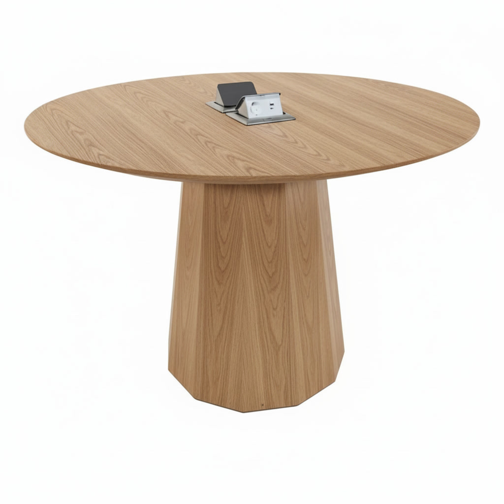 Геометричное двенадцатигранное подстолье обеспечивает устойчивость и формирует архитектурный образ.