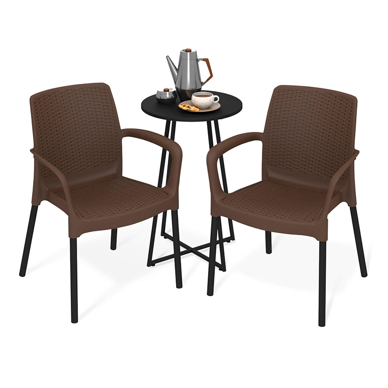 Запросить индивидуальное предложениеКомпактный стол и два удобных стула создают гармоничное пространство для завтраков, кофе-пауз и неспешных бесед. Комплект легко впишется в интерьер кафе, террасы, коворкинга или в домашний интерьер.