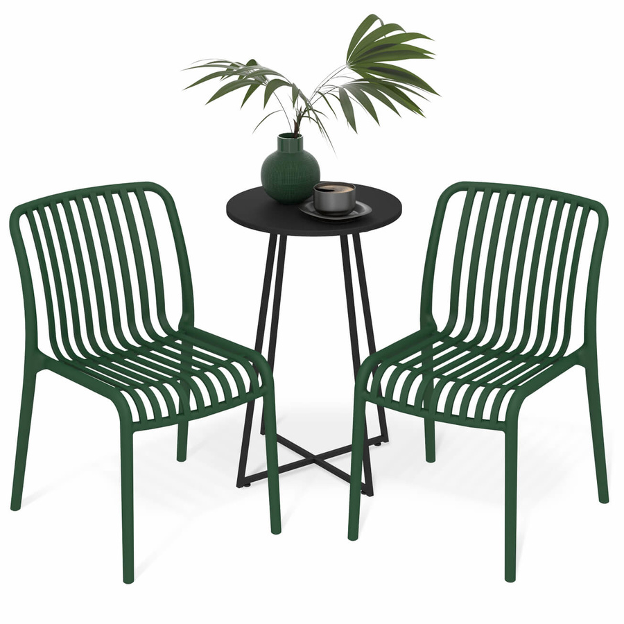 Стол полностью выполнен из металла и окрашен порошковой краской, устойчивой к механическим повреждениям и износу. Надёжная конструкция обеспечивает устойчивость при ежедневной эксплуатации. Стулья изготовлены из полипропилена с армирующими добавками, что повышает жёсткость и долговечность изделия. Материал устойчив к ударным нагрузкам, воздействию влаги и солнечных лучей, не деформируется и сохраняет цвет.
