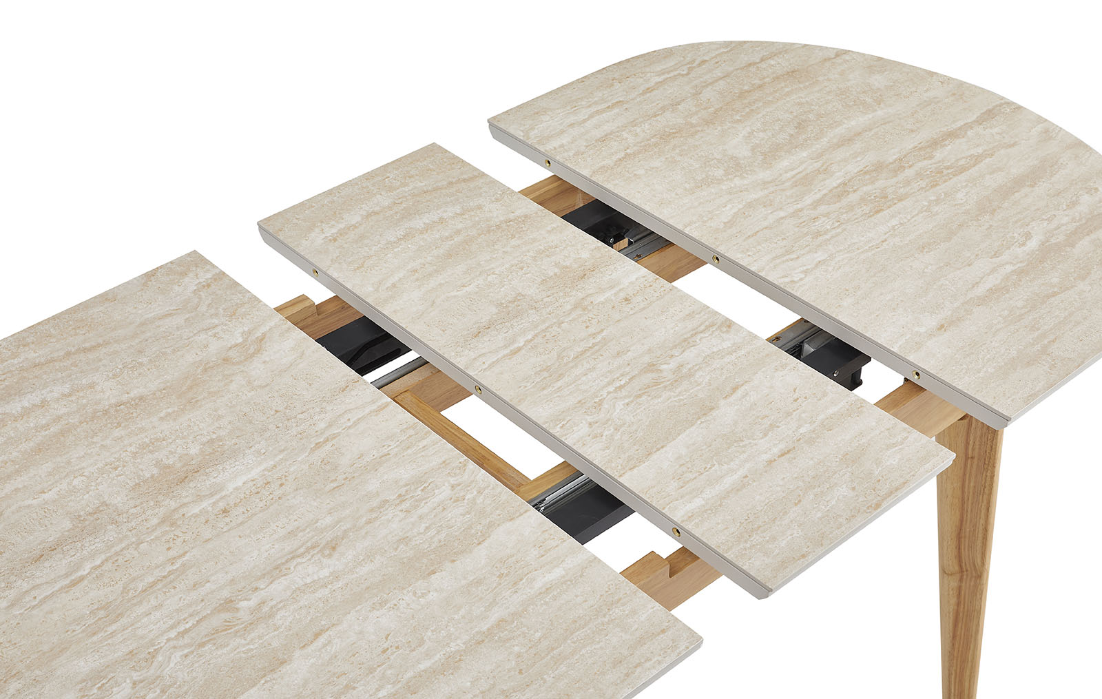 Стол имеет 1 вставку 30 см, которая удобно убирается внутрь стола.