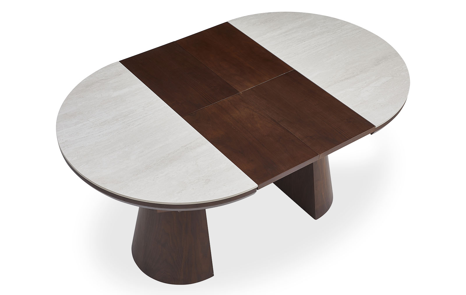 Стол имеет 2 вставки по 30 см, которые можно использовать по отдельности или вместе, что делает стол максимально универсальным.