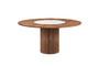 Стол Denver оснащен круглой нераскладывающейся столешницей, выполненной из шпона с круглой вставкой из матовой керамики.