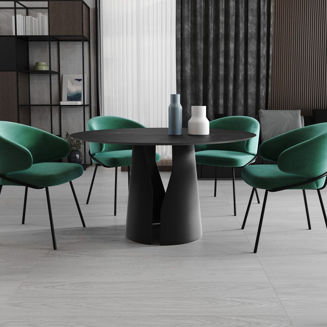 Стол круглый GIO 120, керамика матовая, черная
