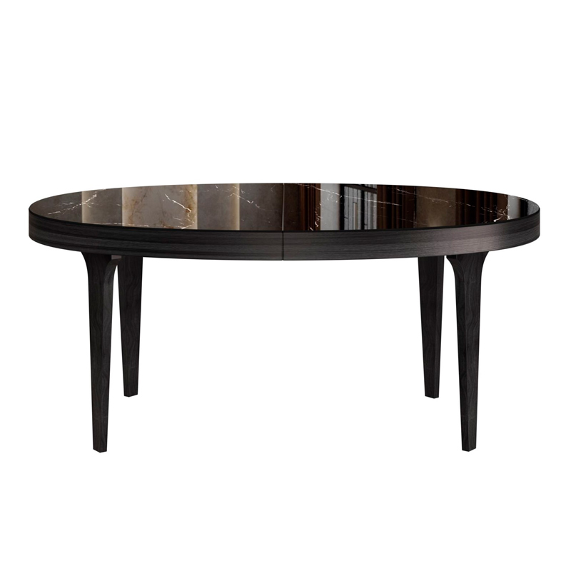 Столешница выполнена из матовой или глянцевой керамики , что придает ей стильный и современный вид. Благодаря возможности раскладывания, этот стол идеально подойдет как для небольших, так и для просторных помещений, позволяя удобно разместить большее количество гостей.