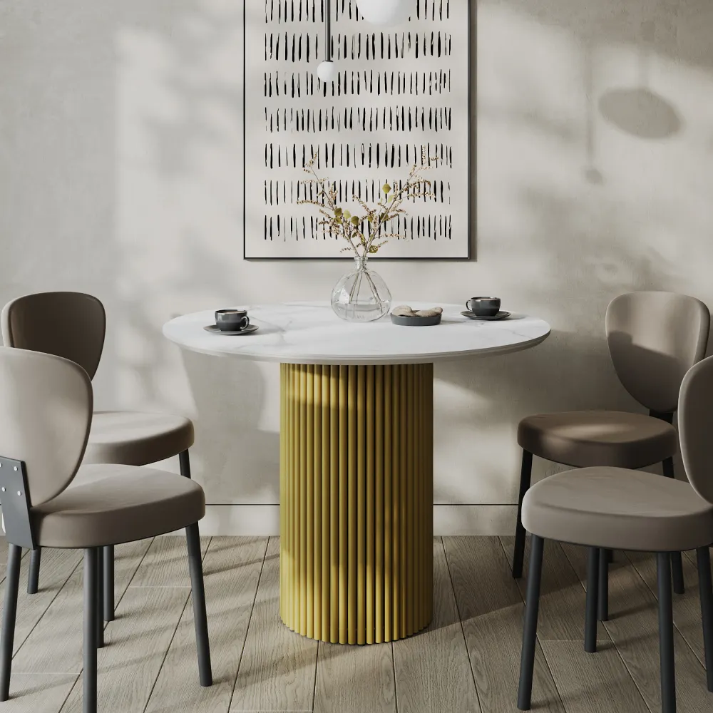 Обеденный стол керамический золотой TRUBIS Stone L D100 см