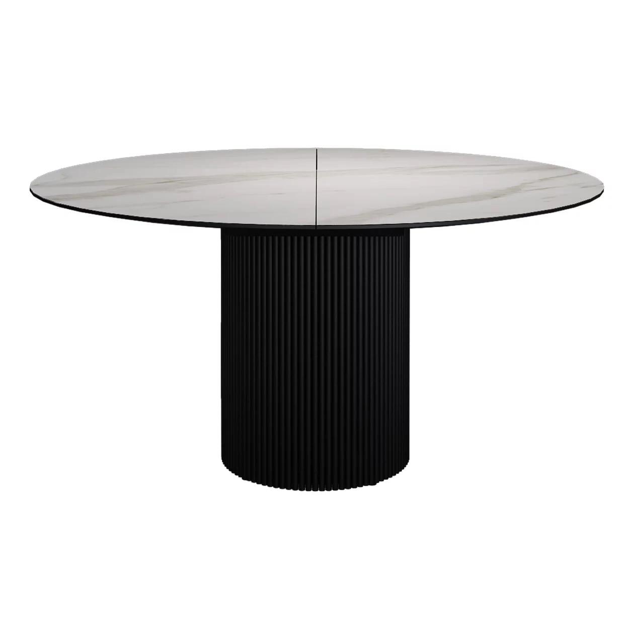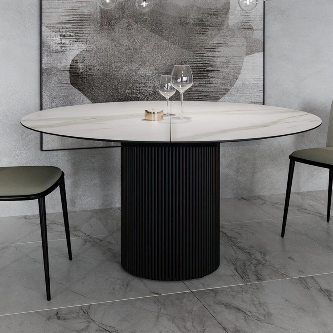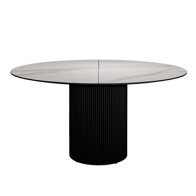 Стол раскладной круглый Нолан 120+40, керамика матовая, белая