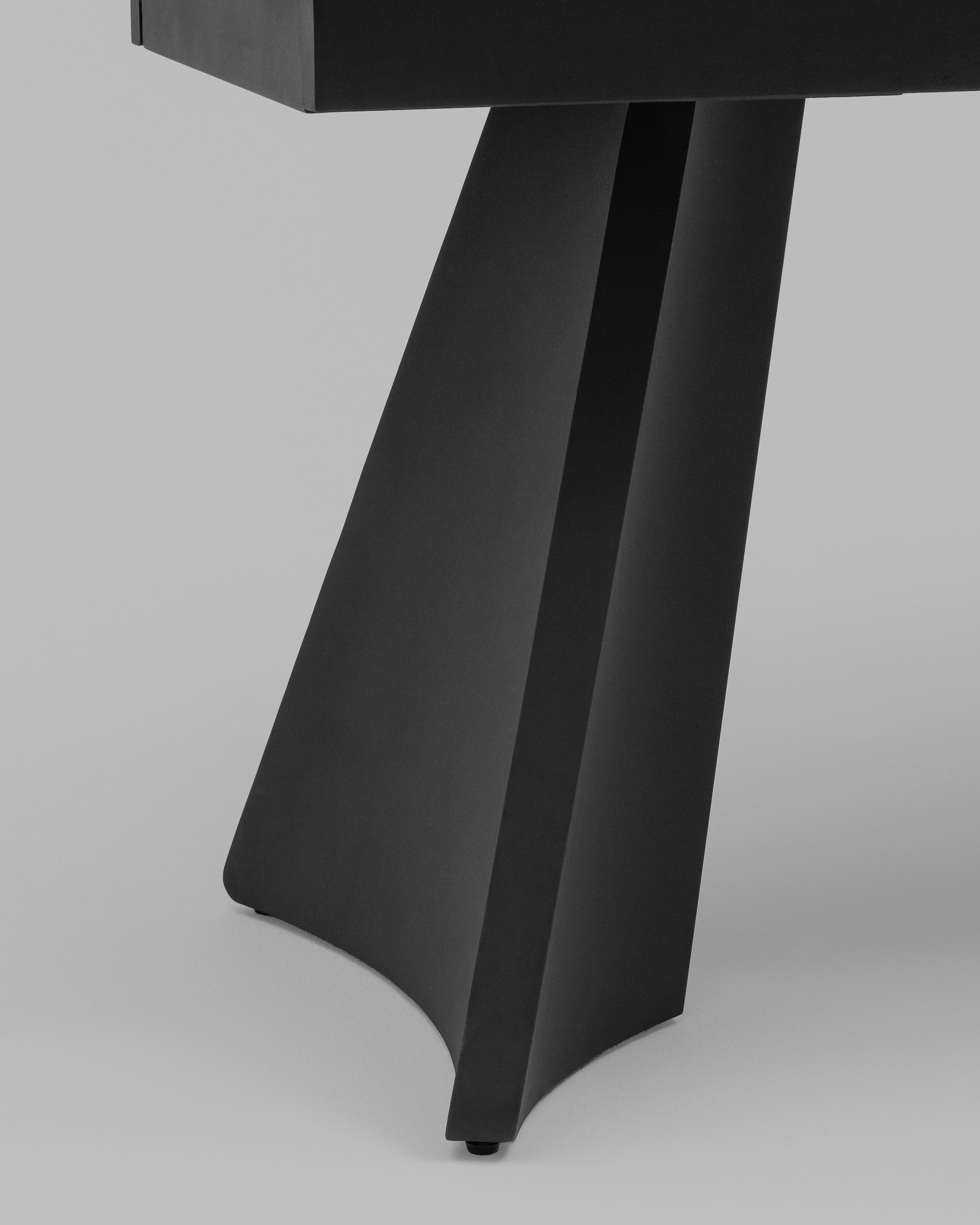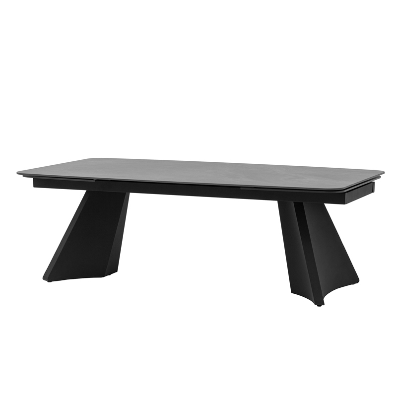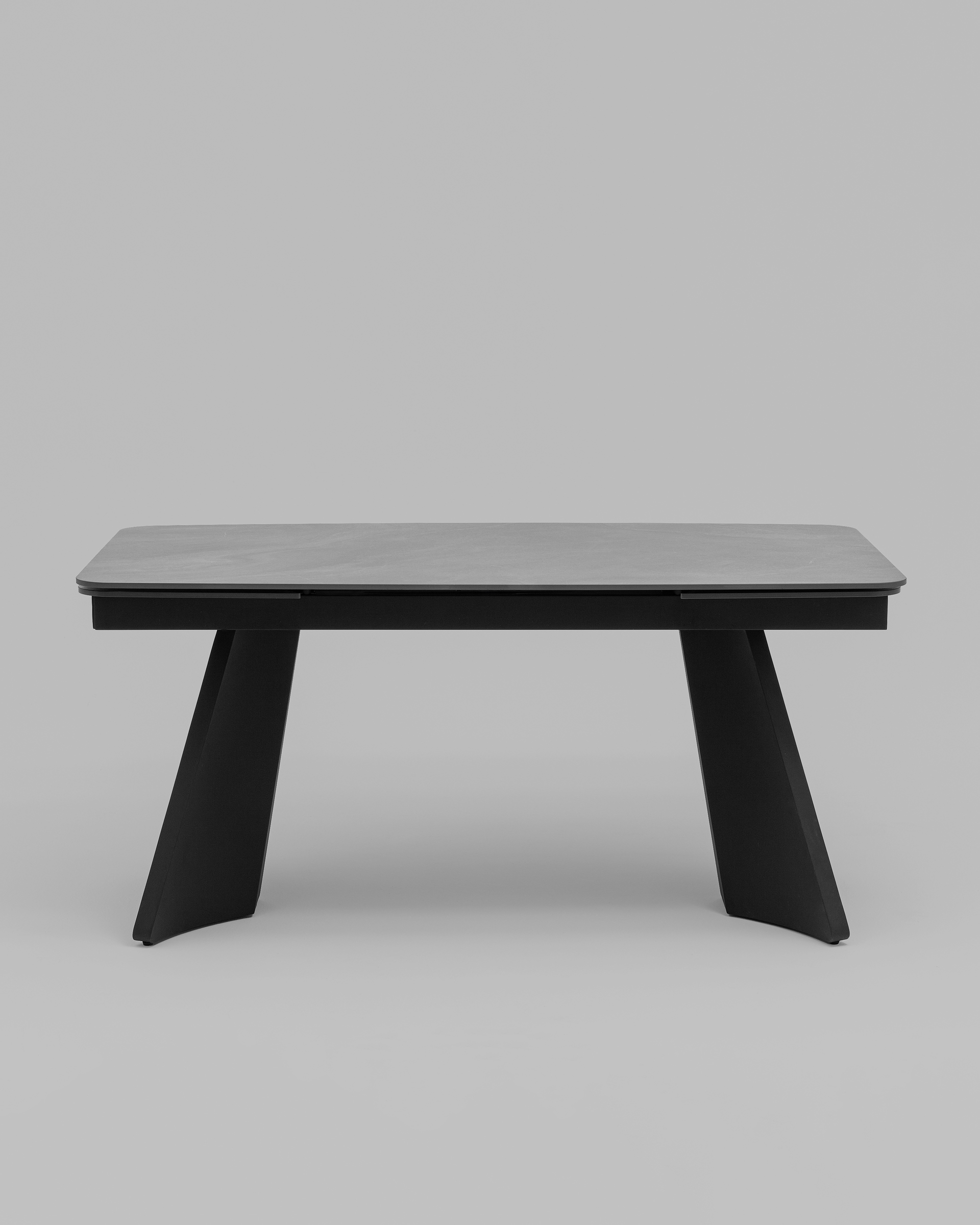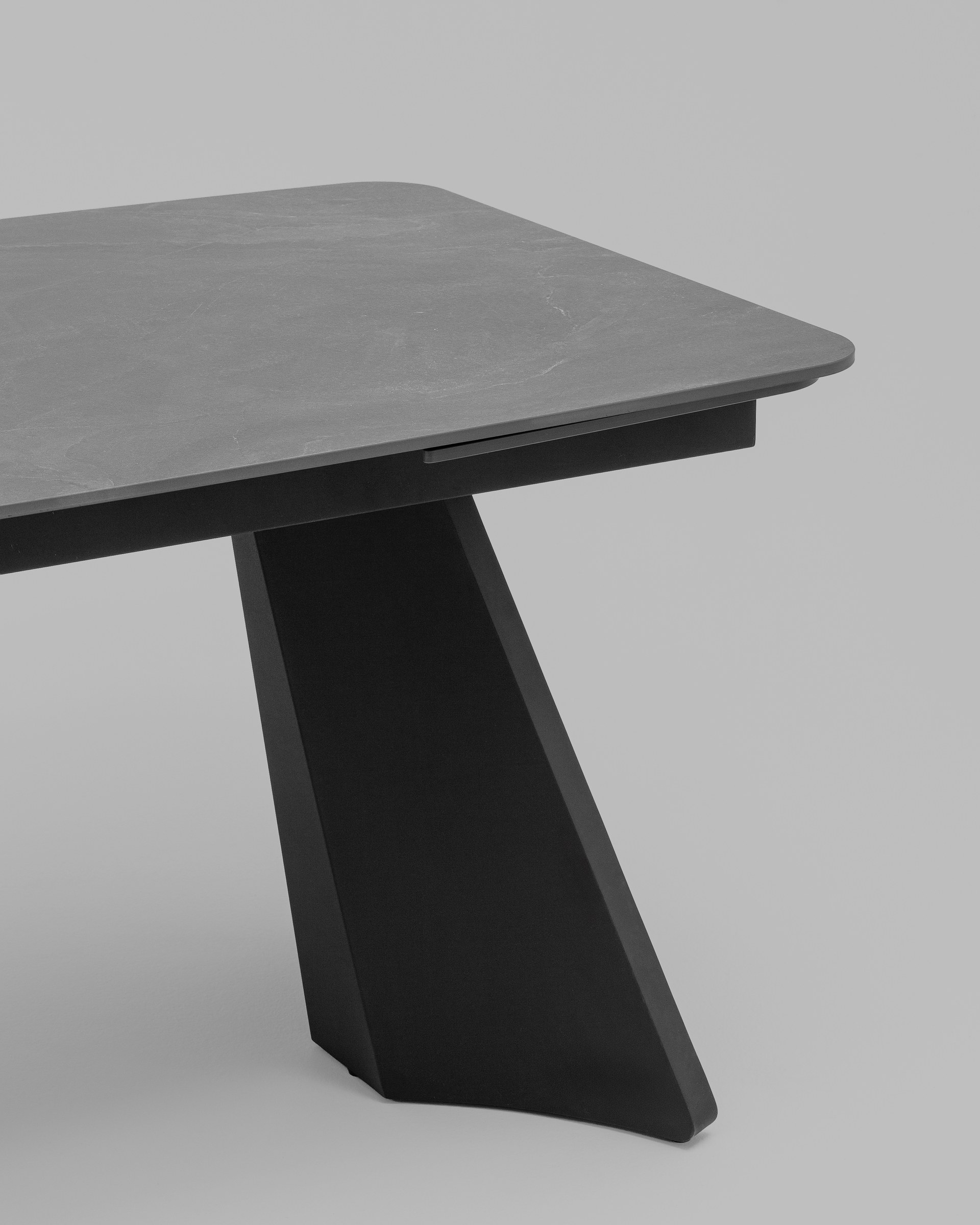Материалы и дизайн. Столешница выполнена из прочной и износостойкой керамики цвета графит. Материал отличается устойчивостью к царапинам, влаге и высоким температурам, что делает стол идеальным для повседневного использования. Прямоугольная форма и металлические ножки создают гармоничный и стильный дизайн. Геометрия ножек обеспечивает устойчивость, а их наклонная конструкция добавляет изюминку в общий облик.