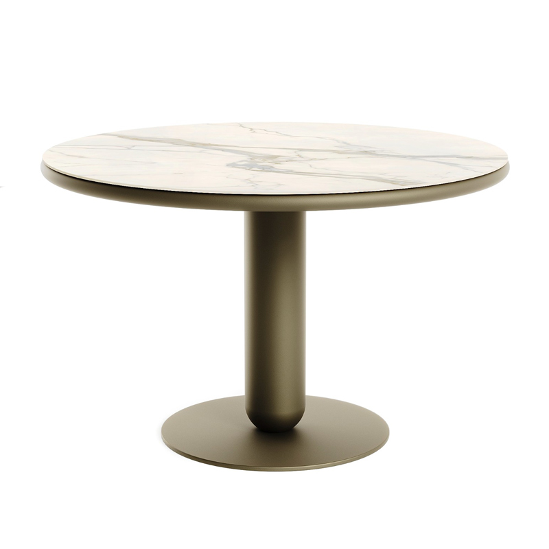 Запросить индивидуальное предложениеАкцентный стол ДОФАМИН — центр внимания обеденной группы. В коллекции впервые появляется ярко-желтое глянцевое покрытие для металлических элементов изделия. Также возможно окрашивание в стандартной палитре ТОК: порошковой краской согласно RAL или цветам металлик. Металлическая конструкция стола построена из закругленной опоры, бесшовного обруча и плоского фланца, формируя цельную архитектуру основания. Круглая столешница производится из керамики или МДФ с покрытием шпона дуба, матового инновационного пластика FENIX NTM или HPL-пластика с текстурой мрамора.