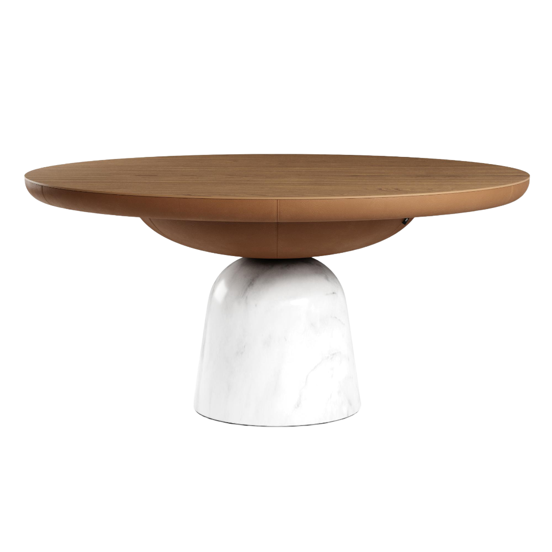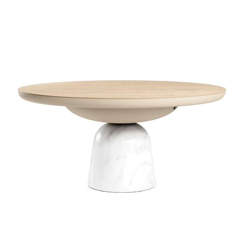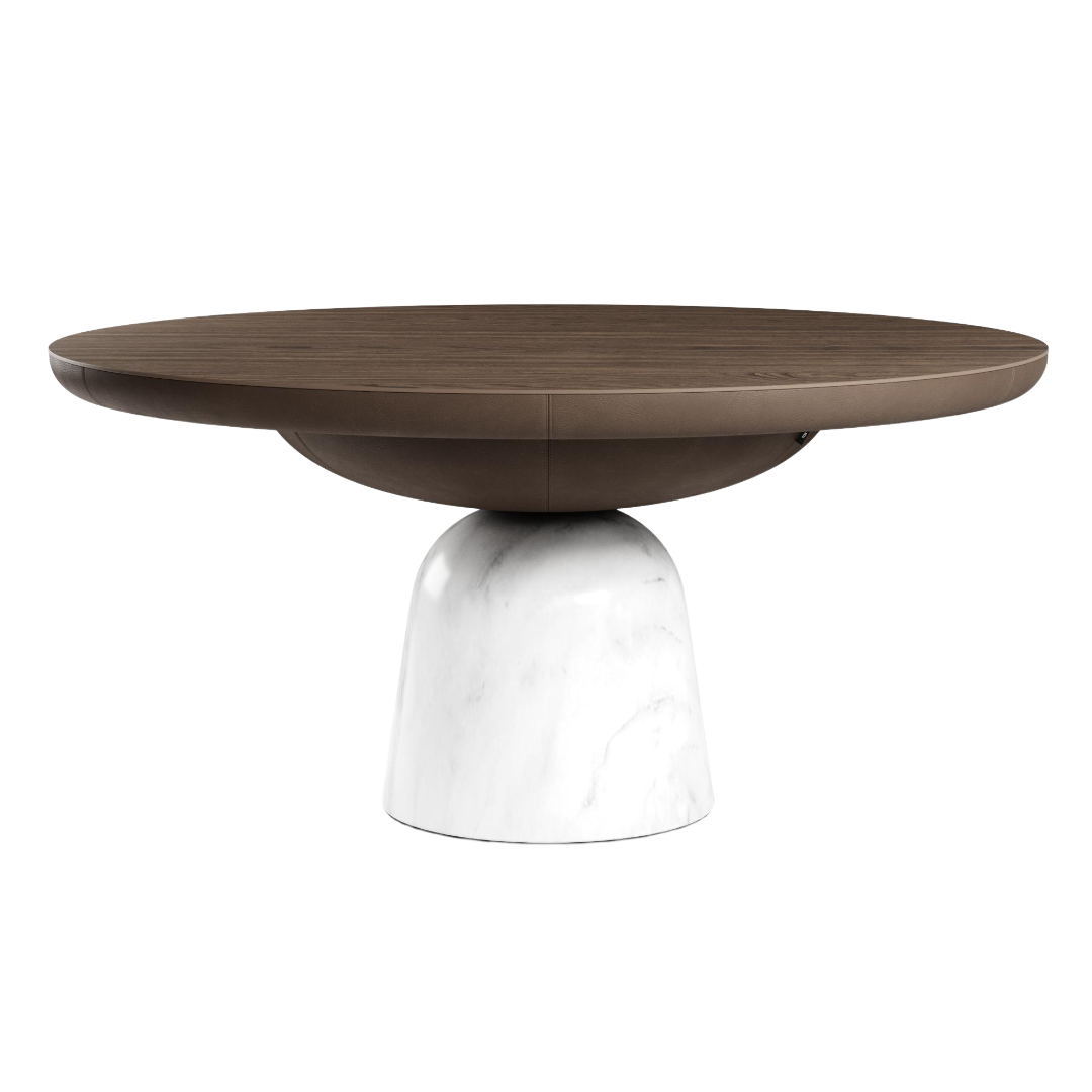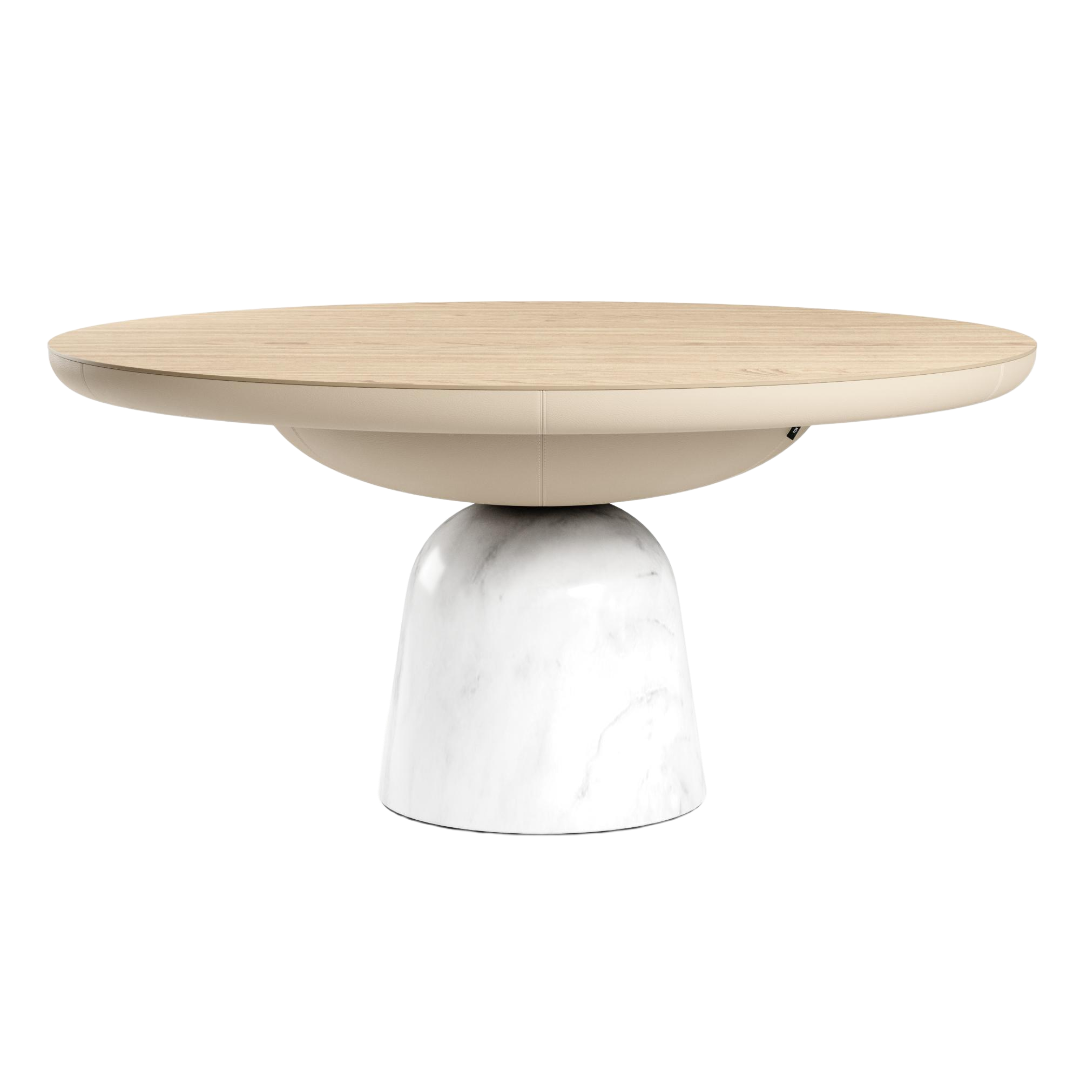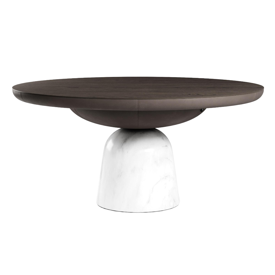 Запросить индивидуальное предложениеСерия монументальных столов САТУРН с мраморной опорой и обтекаемой формой столешницы. Лаконичный и современный, он не перегружает интерьер благодаря комплиментарному сочетанию оттенков столешницы и подстолья. Устойчивая опора выполнена из нового материала, разработанного ТОК, — инженерного мрамора с естественным и предсказуемым рисунком камня. Изделие представлено в нескольких вариациях: с использованием натуральной или искусственной кожи для подстолья, с керамической столешницей или МДФ с покрытием из шпона дуба.