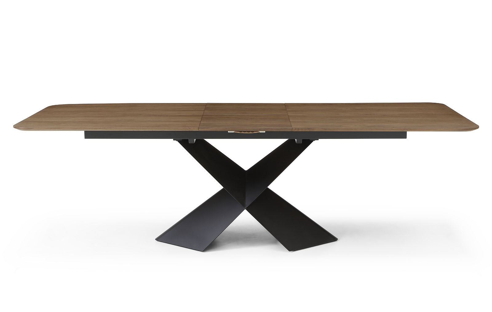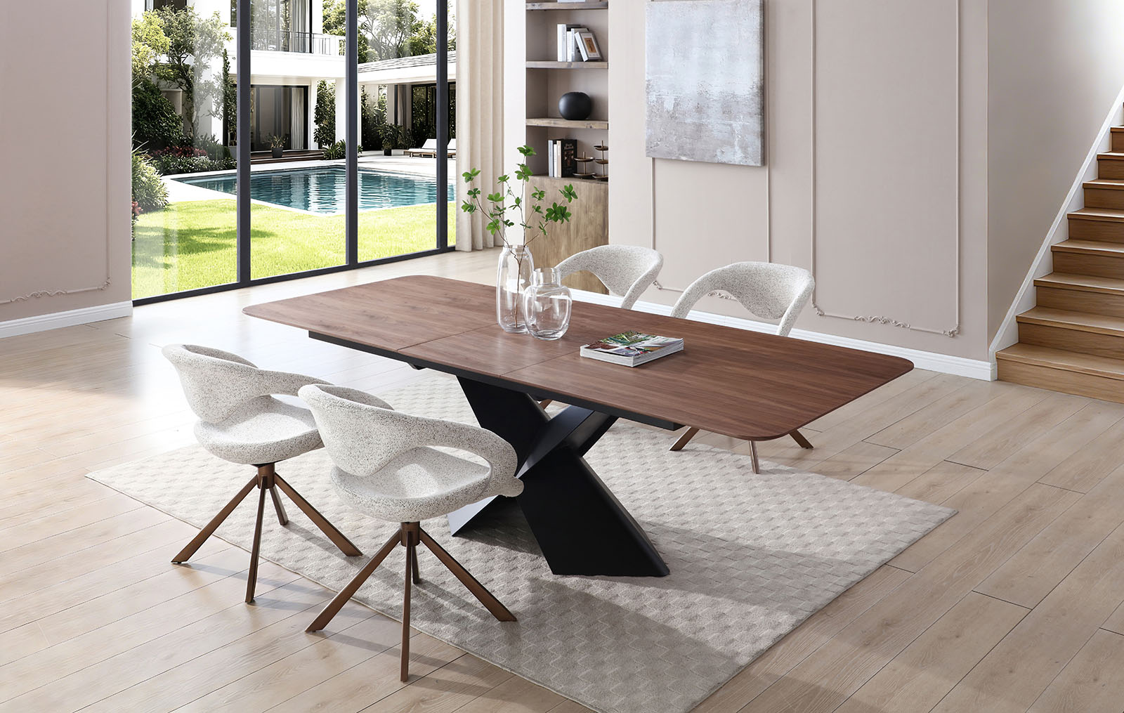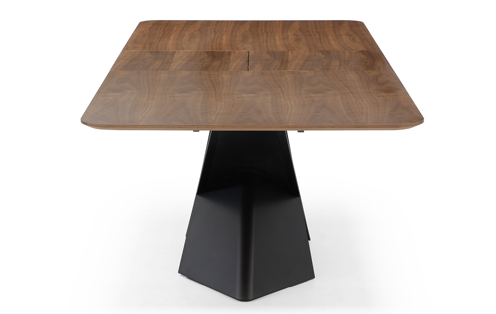 Металлическое основание оригинальной геометрической формы обеспечивает устойчивость и придает столу динамичный, современный характер. Контраст дерева и металла делает модель универсальной для интерьеров в стиле лофт, минимализм или модерн.