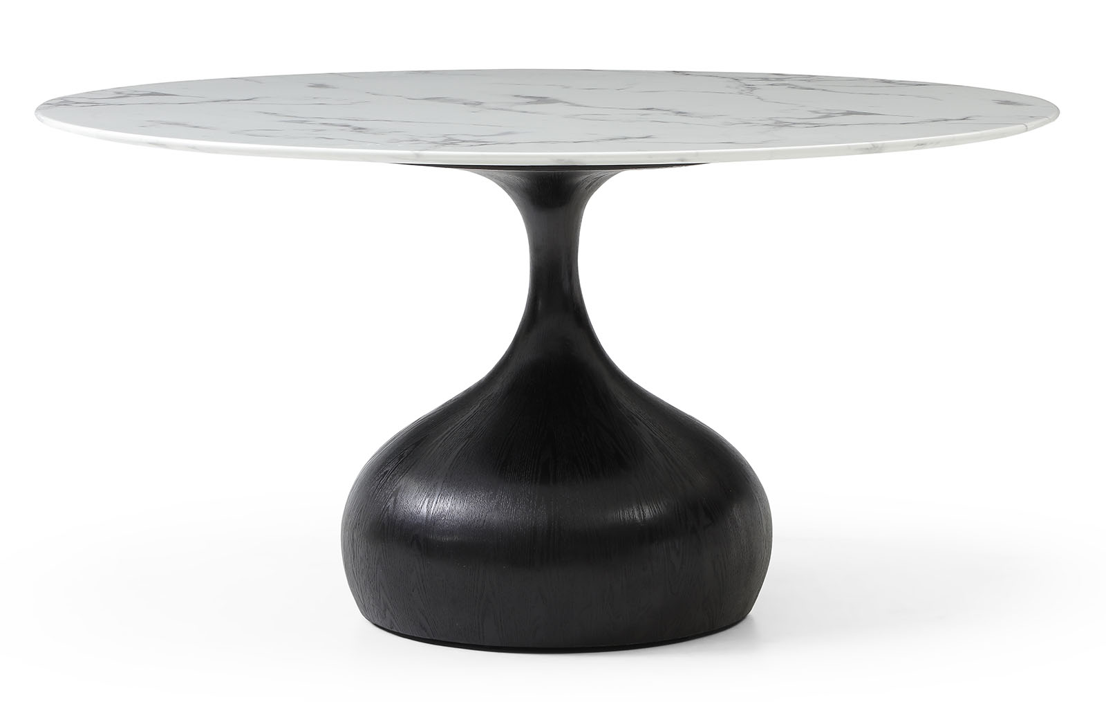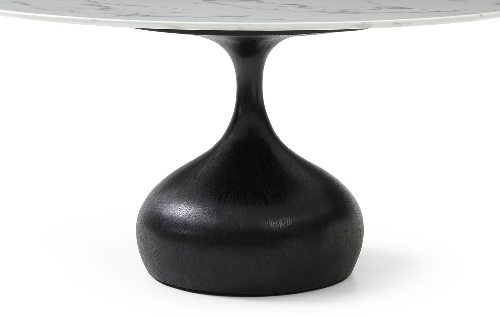 Основание стола — устойчивая массивная ножка из стекловолокна оригинальной формы, покрыта шпоном ясеня, тонированным в чёрный цвет. Центральная опора обеспечивает больше свободного пространства для ног и удобство размещения стульев.