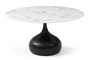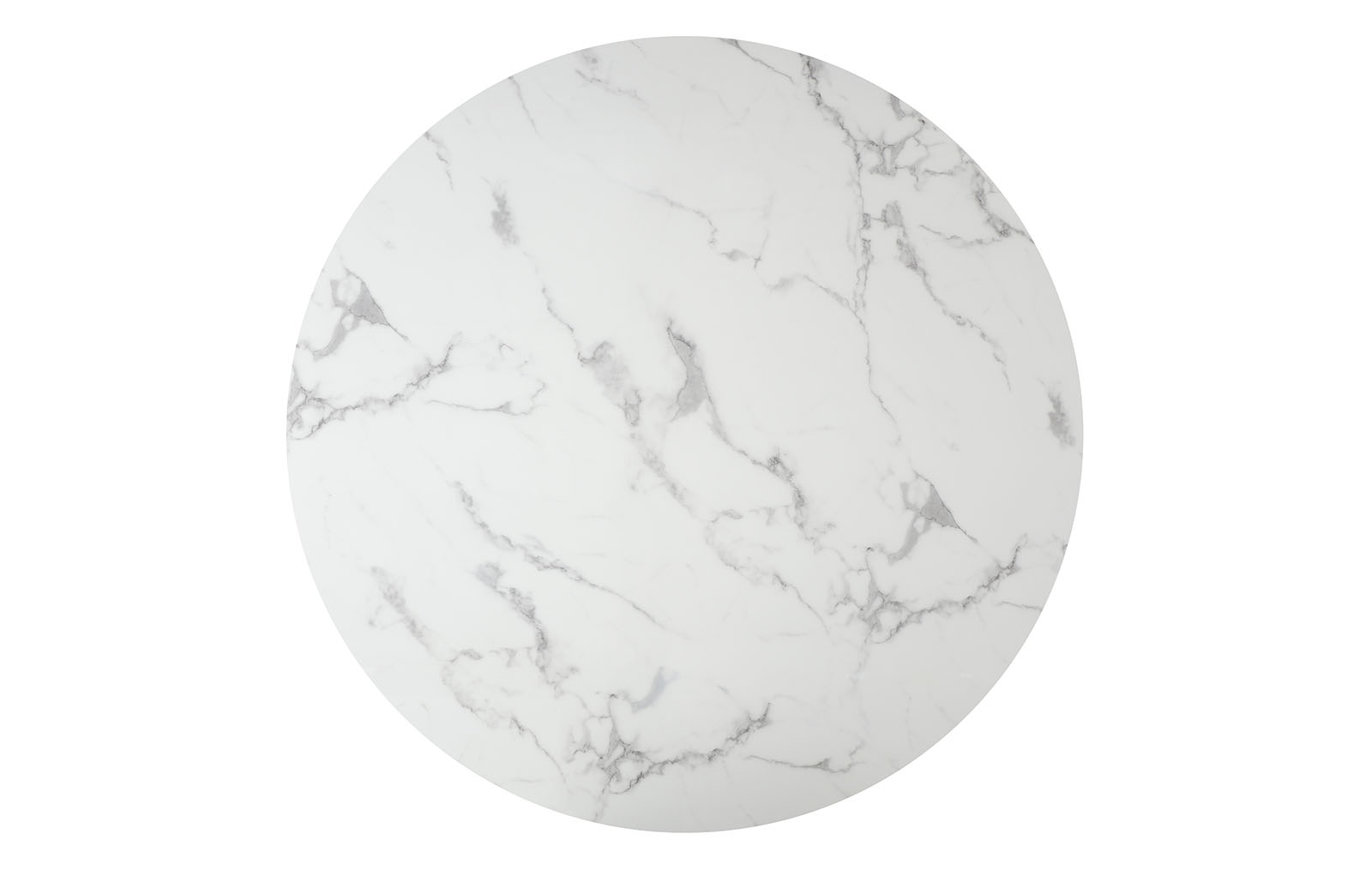 Столешница выполнена из мрамора толщиной 18 мм и МДФ 15 мм, что обеспечивает прочность, устойчивость к разным воздействиям и долговечность. Круглая форма столешницы создаёт комфортную зону для общения и позволяет удобно разместить гостей.