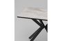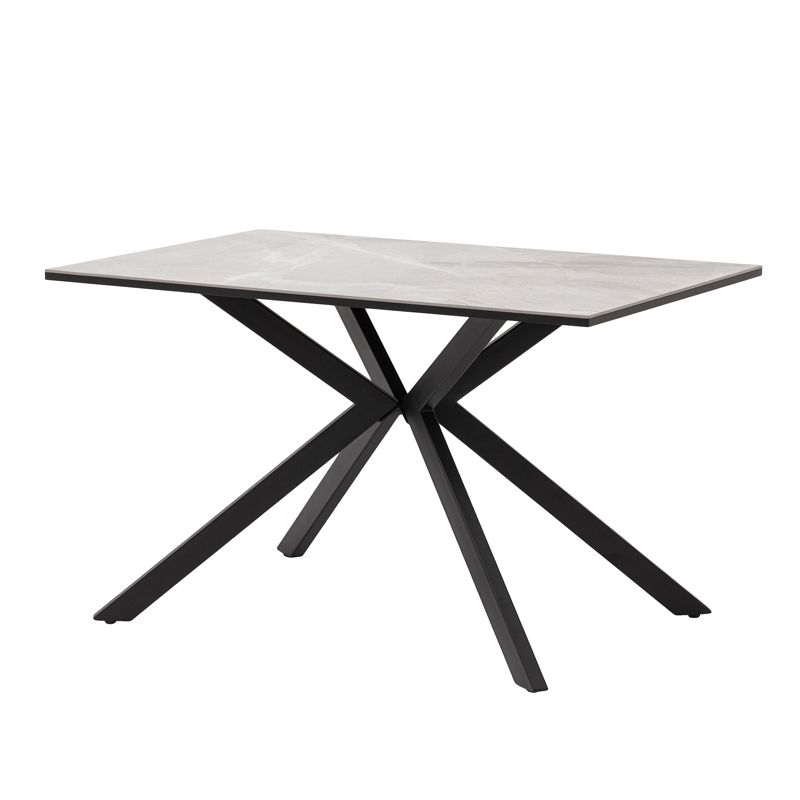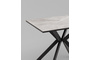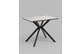 Столешница изготовлена из качественного МДФ, покрытого керамическим слоем, что гарантирует долговечность и легкость в уходе. Толщина столешницы составляет 2,2 см, что придает конструкции устойчивость и надежность. Металлические ножки в черном цвете обеспечивают отличную поддержку и долговечность, выдерживая максимальную нагрузку до 50 кг.
