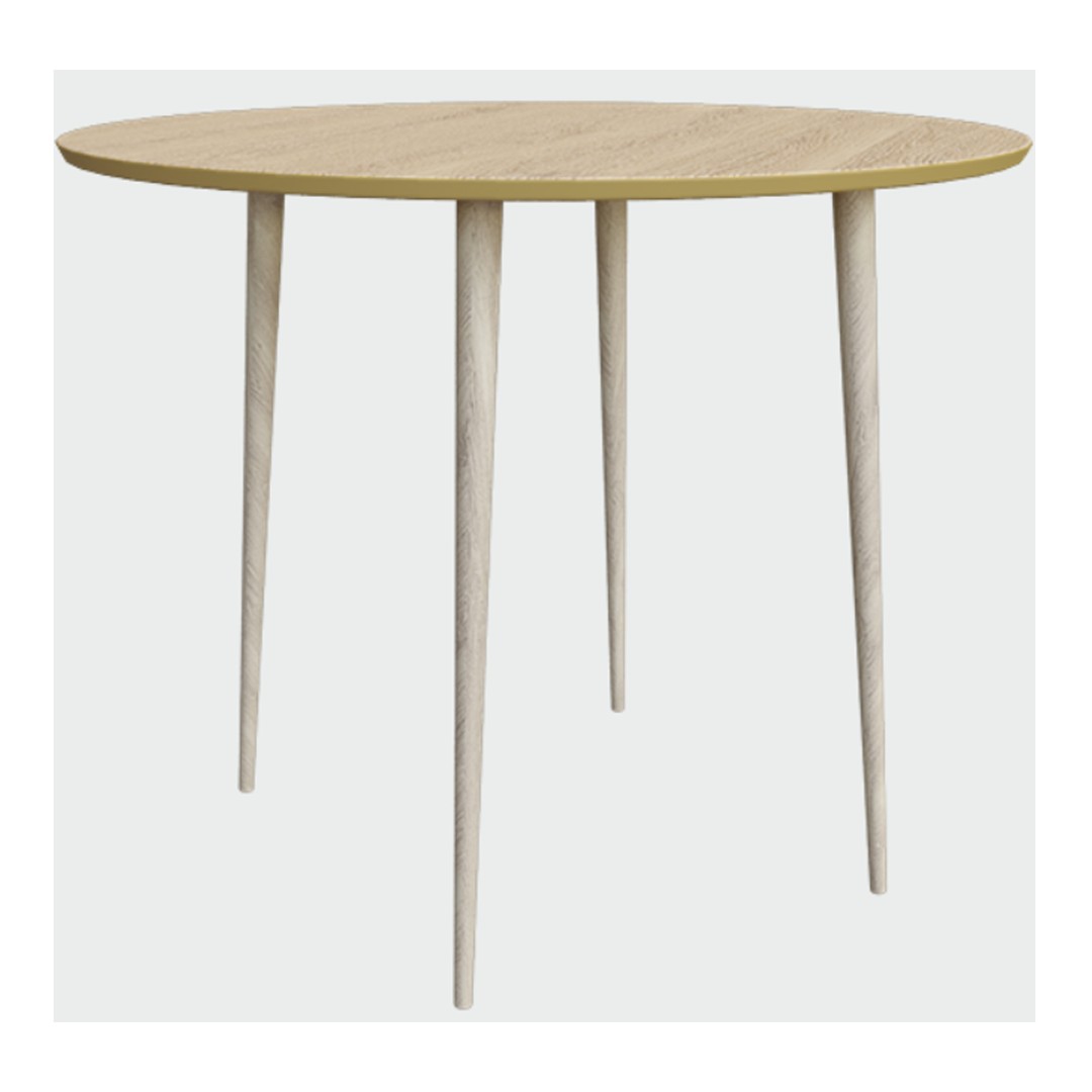 Верхняя часть столешницы, которая изготовлена из МДФ, покрыта натуральным дубовым шпоном, нижняя часть столешницы и боковой кант окрашены в цвета из палитры Woodi Furniture. Четыре устойчивые ножки изготовлены из массива бука и покрыты прозрачным лаковым покрытием, либо покрашены в любой цвет из нашей палитры (вы можете выбрать любой вариант, укажите его в комментариях к заказу).