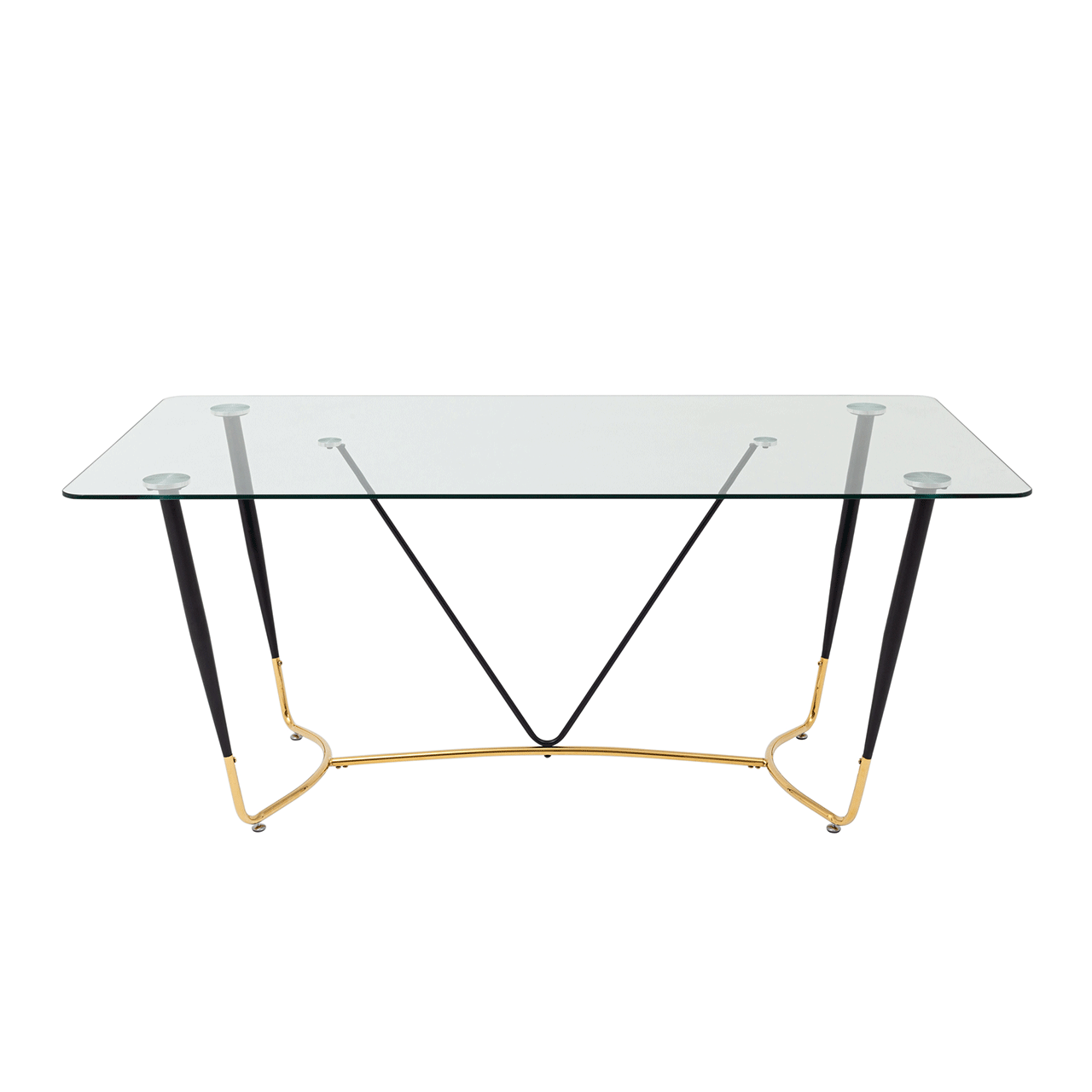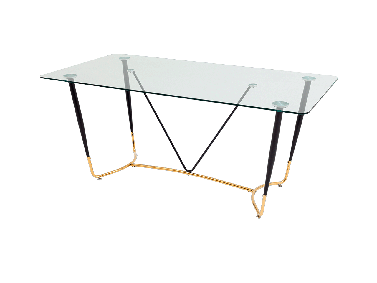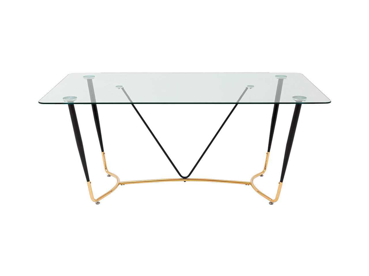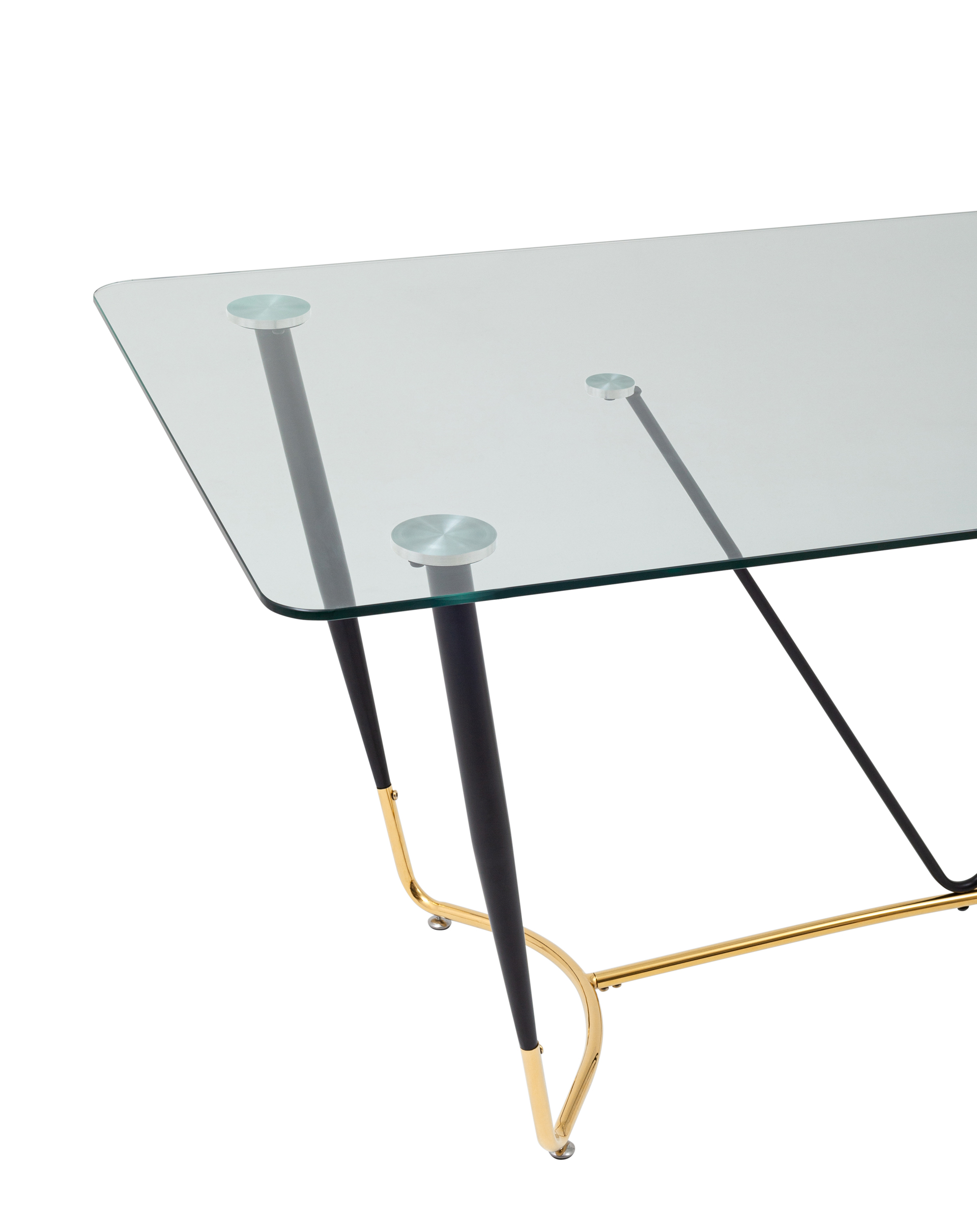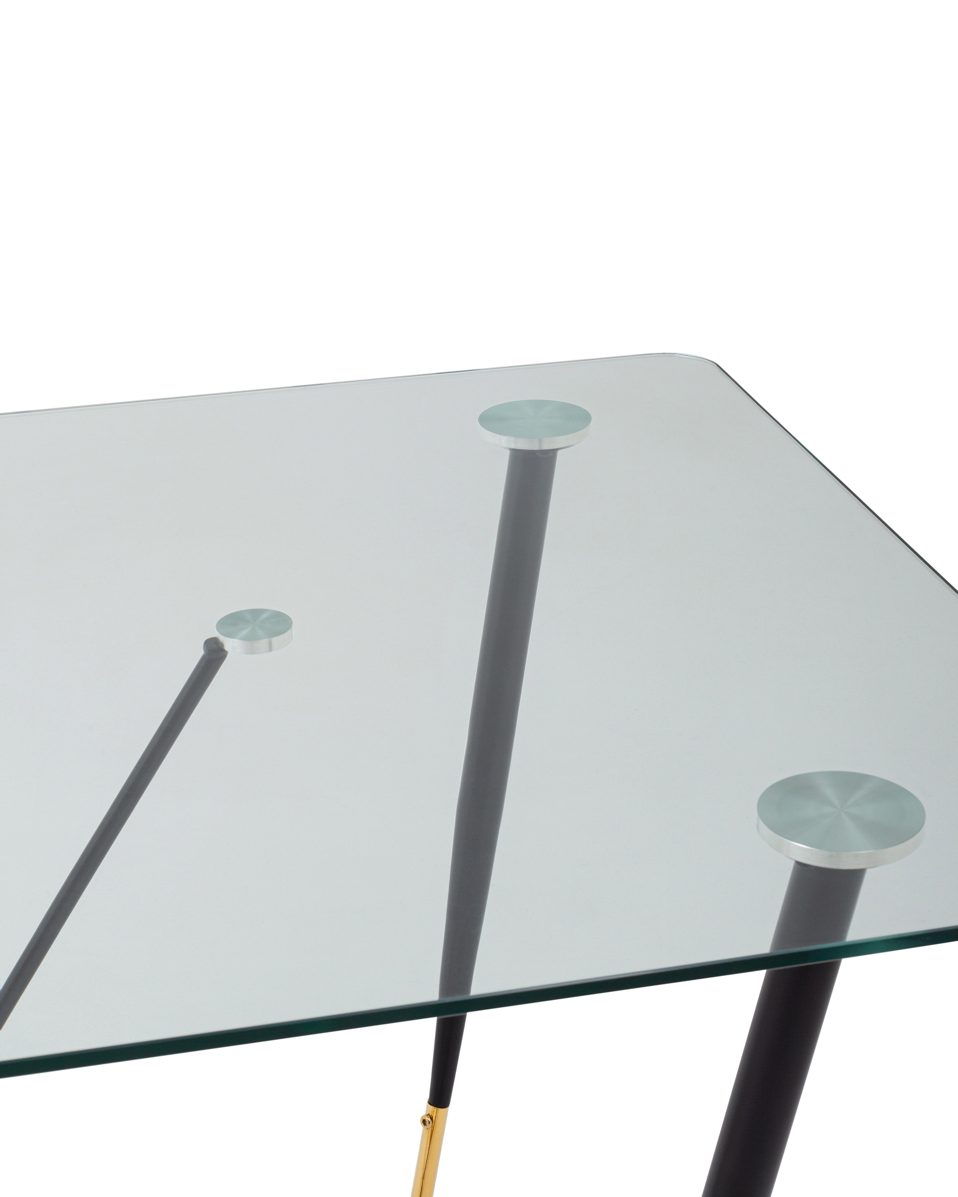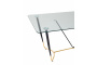 Запросить индивидуальное предложениеСтильный обеденный стол с прозрачной столешницей. Закаленное стекло прочный и экологически чистый материал, простой в уходе и устойчив к любим загрязнениям, идеальный вариант для кухни. Прозрачная столешница с закруглёнными углами придает столу эстетичный внешний вид и легкость. Металлический каркас в черно-золотом цвете прекрасно сочетается со столешницей. Выдерживает нагрузку до 100 кг, основание оснащено подпятниками для предотвращения порчи напольного покрытия. Стол Даймакс дополнит любой современный интерьер кухни или зала.