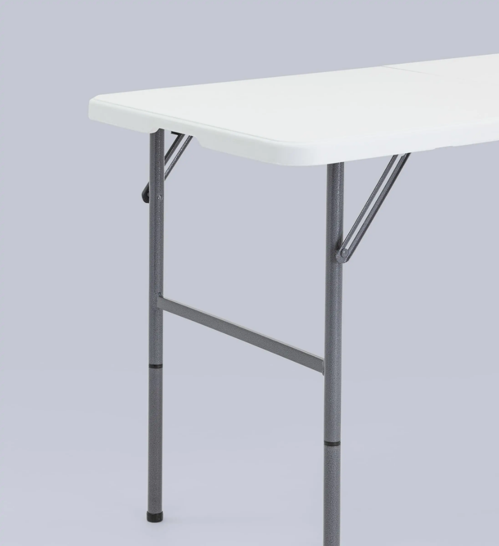 Для каркаса используется стальная труба особой прочности 25*1 мм, а столешница выполнена из 100% не переработанного полиэтилена HDPE (полиэтилен высокой плотности). Считается одним из более безопасных видов пластика. HDPE пластик выдерживает высокие нагрузки, не трескается при ударной нагрузке, эластичен в диапазоне температур от –70 до +100 °С.