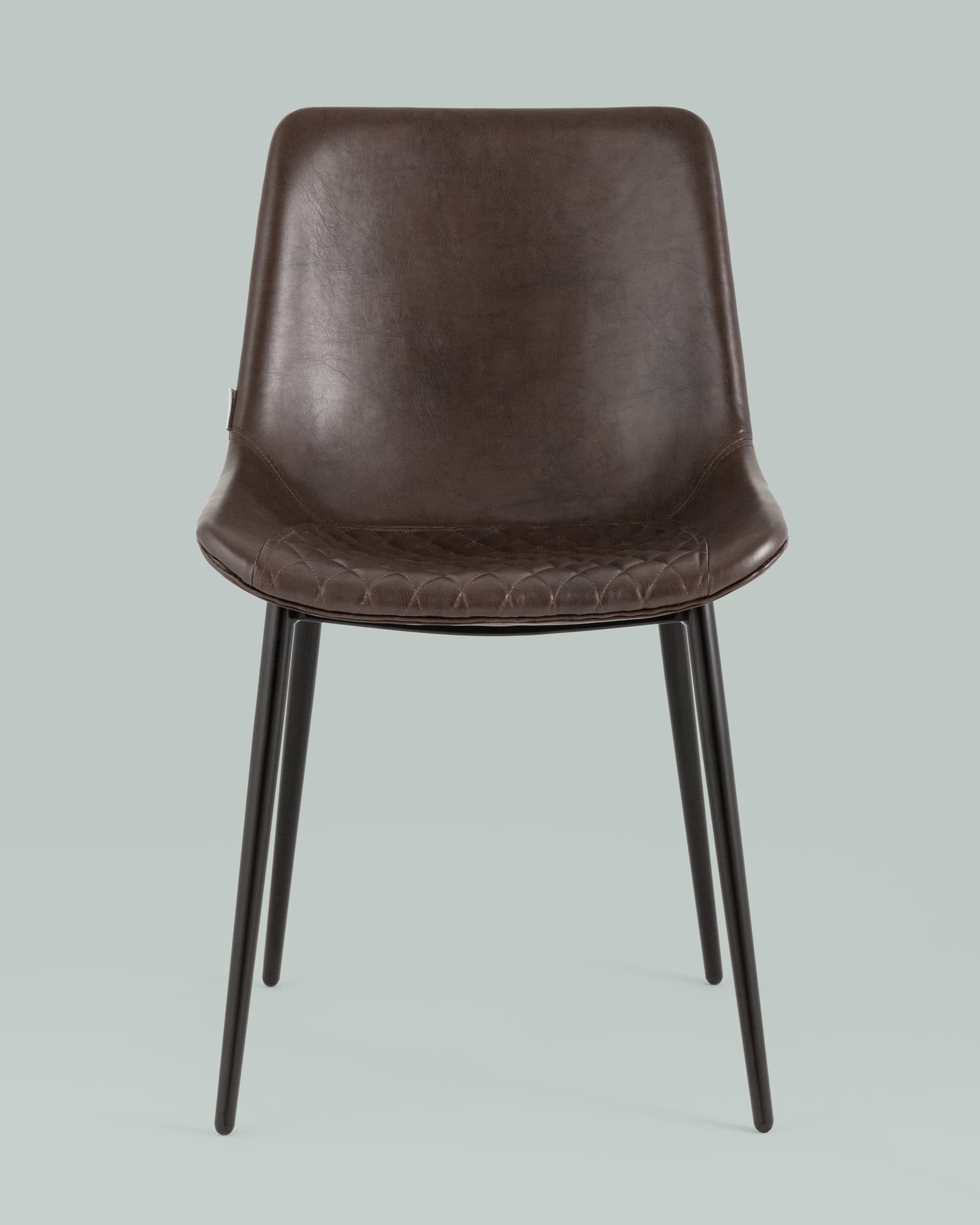 Комфортная посадка обеспечивается за счет широкого сиденья и плавной спинки. Декоративная стяжка в виде ромбов подчеркивает стильный дизайн стула и добавляет мягкость сиденью. Прочный металлический каркас выдерживает нагрузку до 120 кг. Ножки оснащены полукруглыми подпятниками для защиты напольного покрытия.