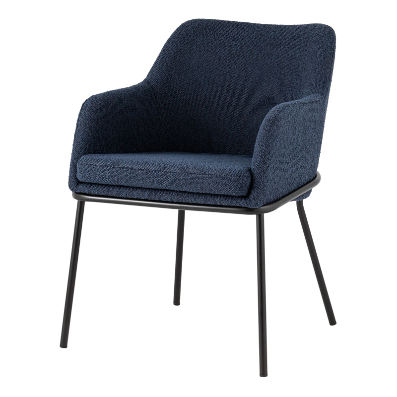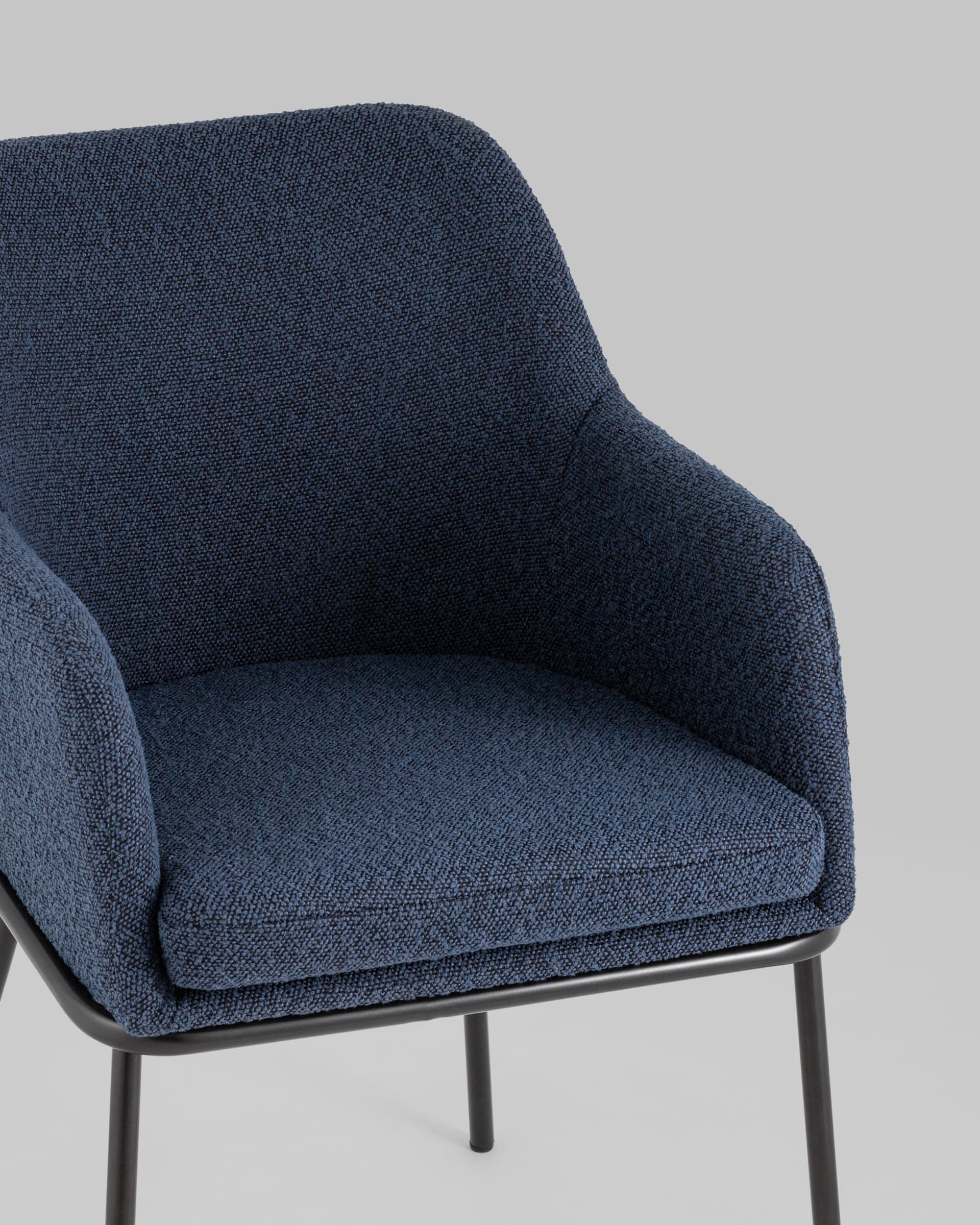 Запросить индивидуальное предложениеИзящный стул с комфортным сиденьем и спинкой. Основание и ножки черного матового цвета изготовлены из прочного металла. Обивка выполнена из прочной ткани с мягким ворсом в стиле букле, необычная фактура и мягкость добавляют стулу больше уюта.