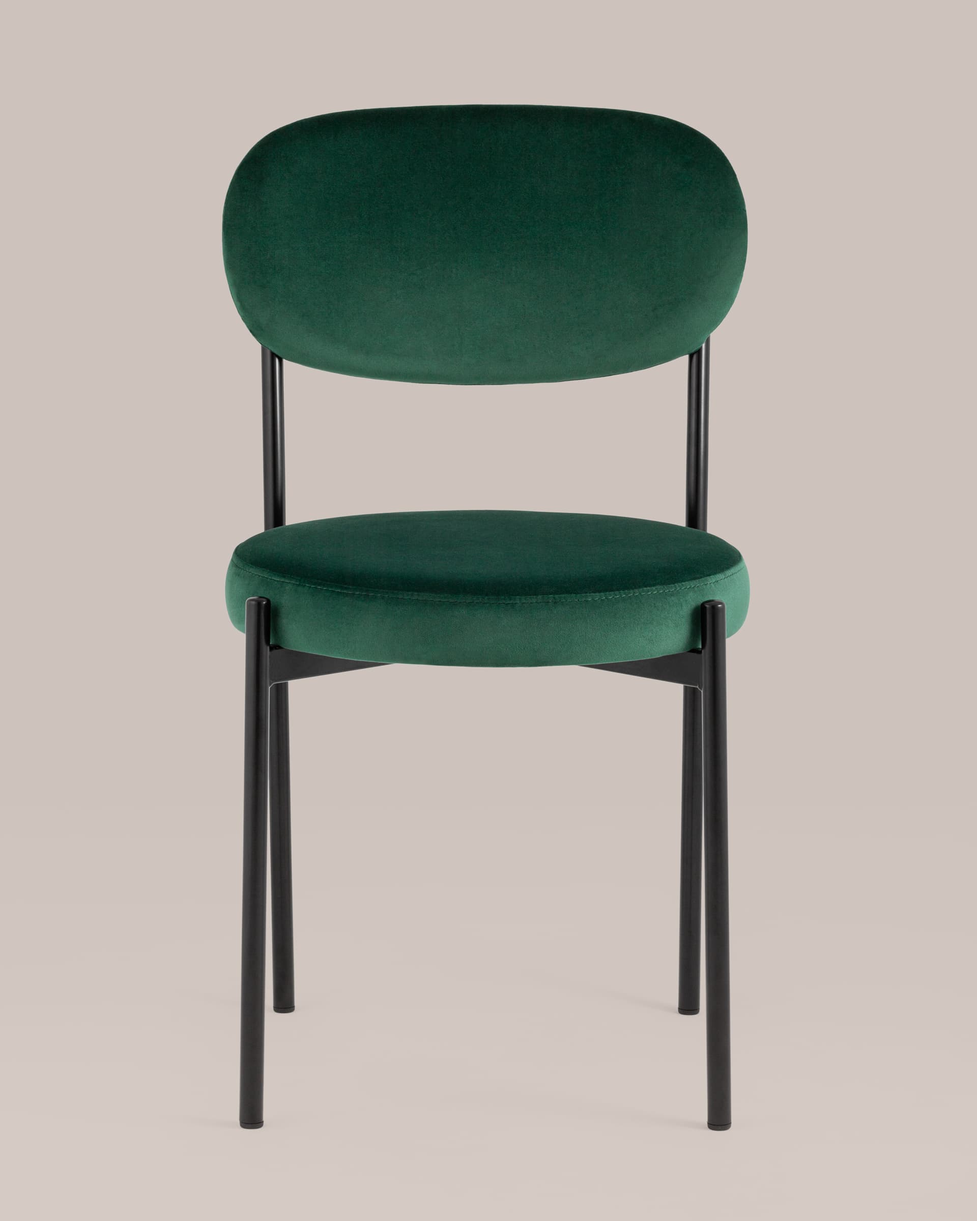 Обивка выполнена из прочного износостойкого велюра, ножки изготовлены из металла в черном цвете. На ножках дополнительно предусмотрены специальные подпятники, которые предотвращают скольжение и повреждение напольного покрытия.
