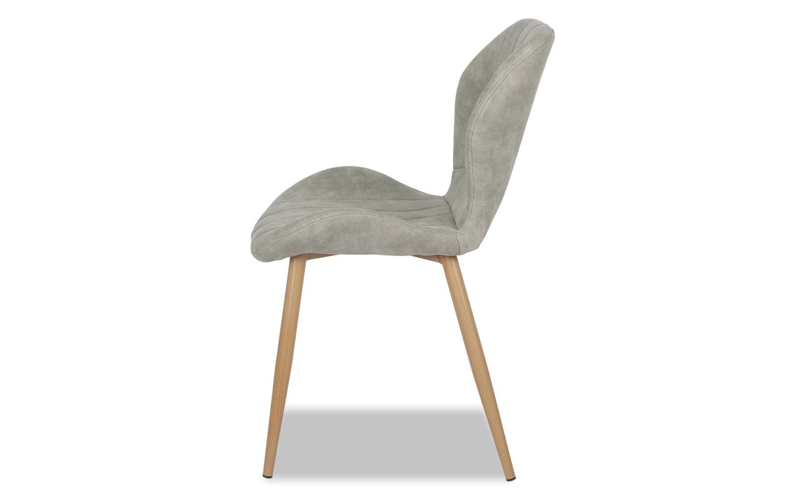 Мягкие сиденье и спинка данной модели имеют эргономичную форму, а потому на стуле можно расположиться с полным комфортом. Светло-серая обивка из приятного на вид и на ощупь материала (эконубук) хорошо сочетается с металлическими ножками цвета дерева. Такой стул подойдет для помещения, оформленного в любой цветовой гамме.