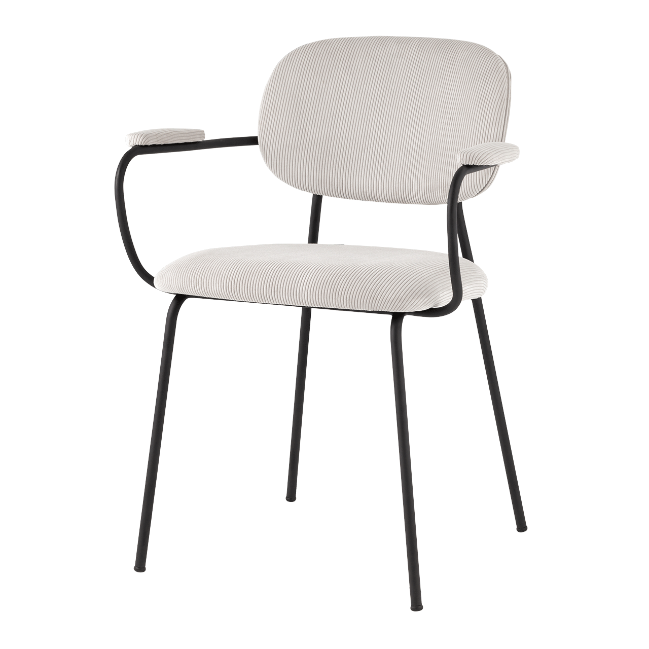 Запросить индивидуальное предложениеСовременный обеденный стул с подлокотниками и металлическими ножками. Обивка выполнена из мягкого велюра. Металлический каркас черного цвета огибает спинку и плавно переходит из подлокотников в ножки. Широкое сиденье обеспечивает удобную посадку и уют. На подлокотниках для дополнительного комфорта предусмотрены мягкие накладки.