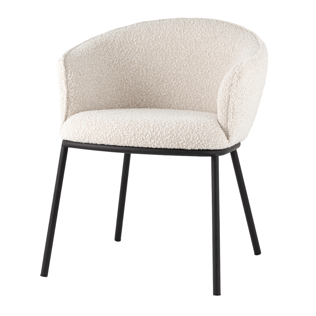 Запросить индивидуальное предложениеОбеденный стул Дон с мягкой полукруглой спинкой и сидением из ткани букле отлично впишется в обеденную зону любой современной кухни. Каркас металлический, ножки выполнены в черном цвете. Дополнительно предусмотрены специальные подпятники, которые предотвращают скольжение и повреждение напольного покрытия. Прекрасно сочетается с обеденным или письменным столом.