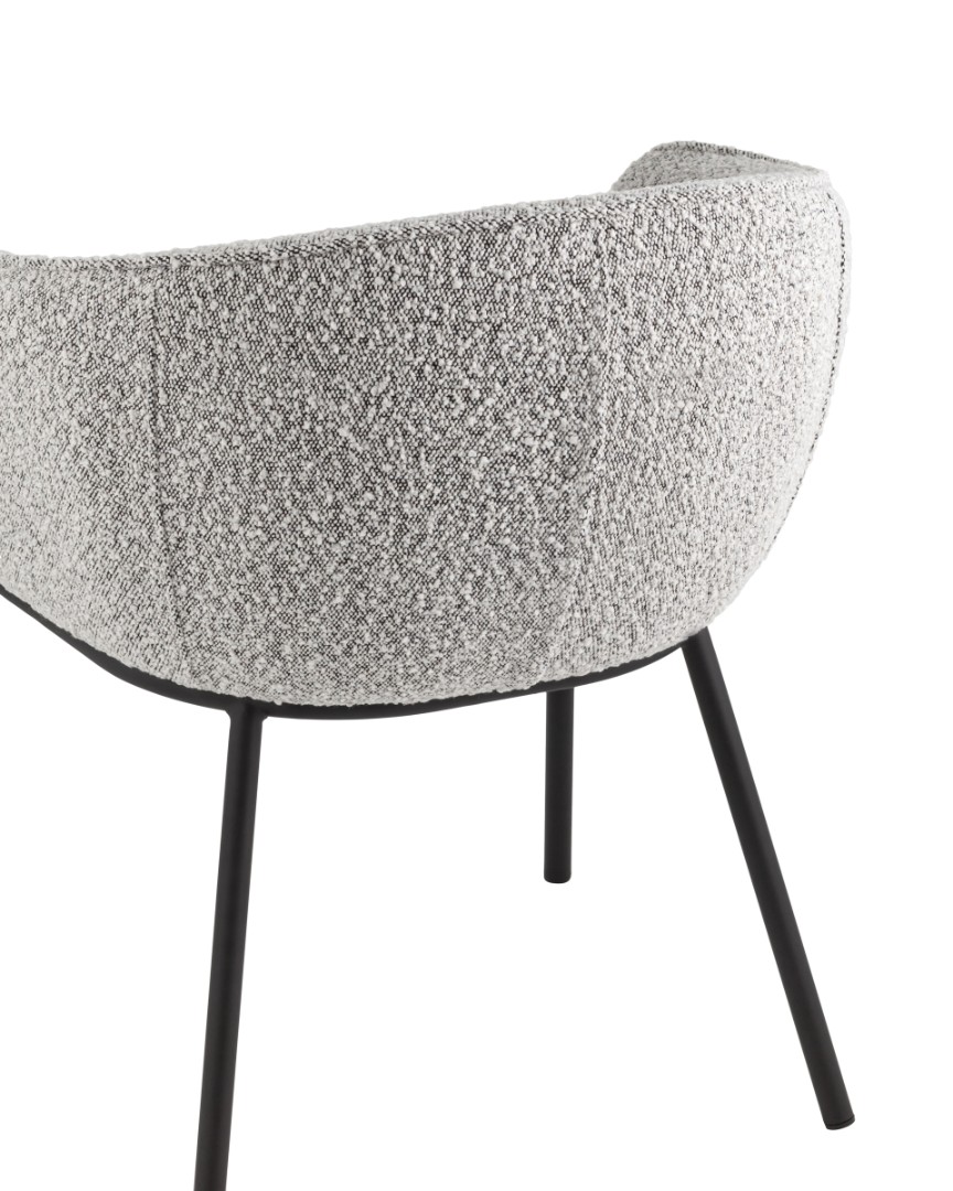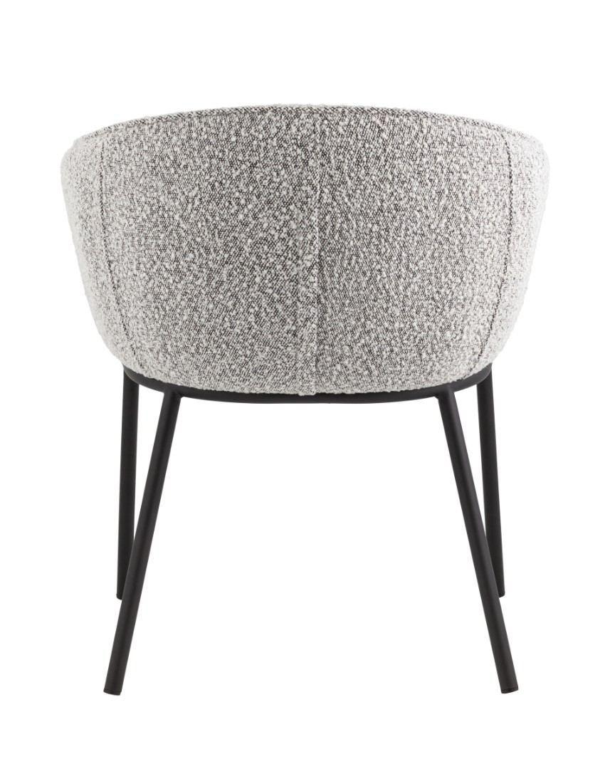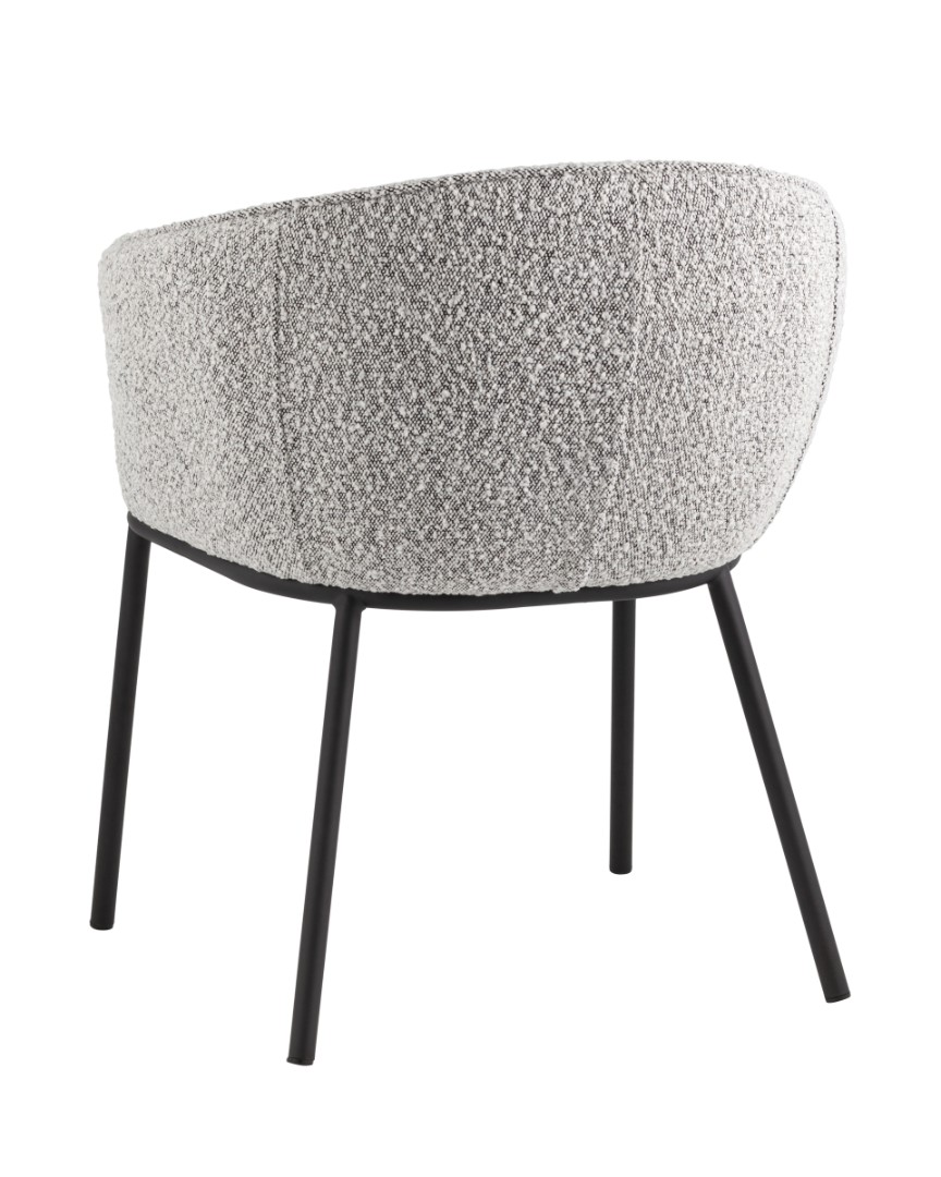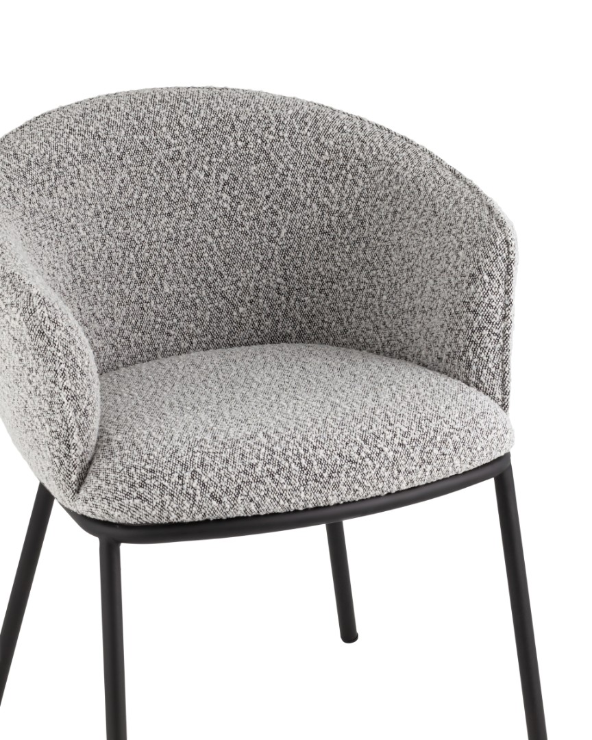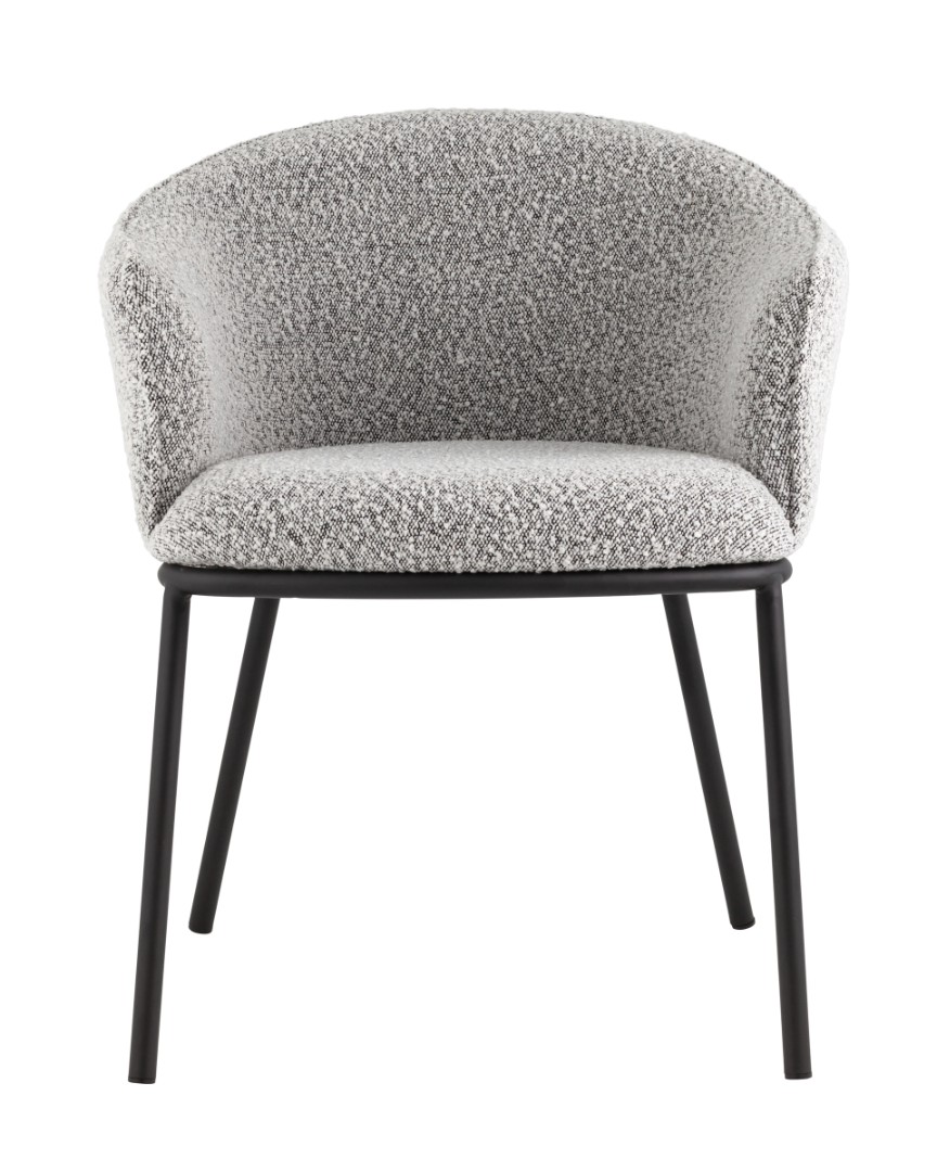 Запросить индивидуальное предложениеОбеденный стул Дон с мягкой полукруглой спинкой и сидением из ткани букле отлично впишется в обеденную зону любой современной кухни. Каркас металлический, ножки выполнены в черном цвете. Дополнительно предусмотрены специальные подпятники, которые предотвращают скольжение и повреждение напольного покрытия. Прекрасно сочетается с обеденным или письменным столом.