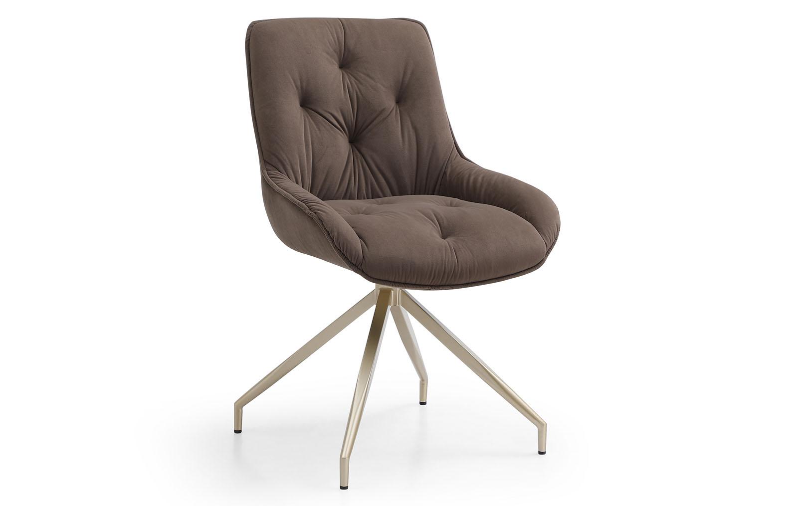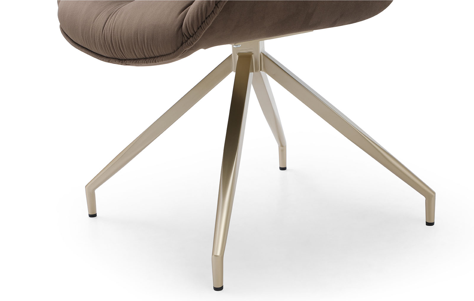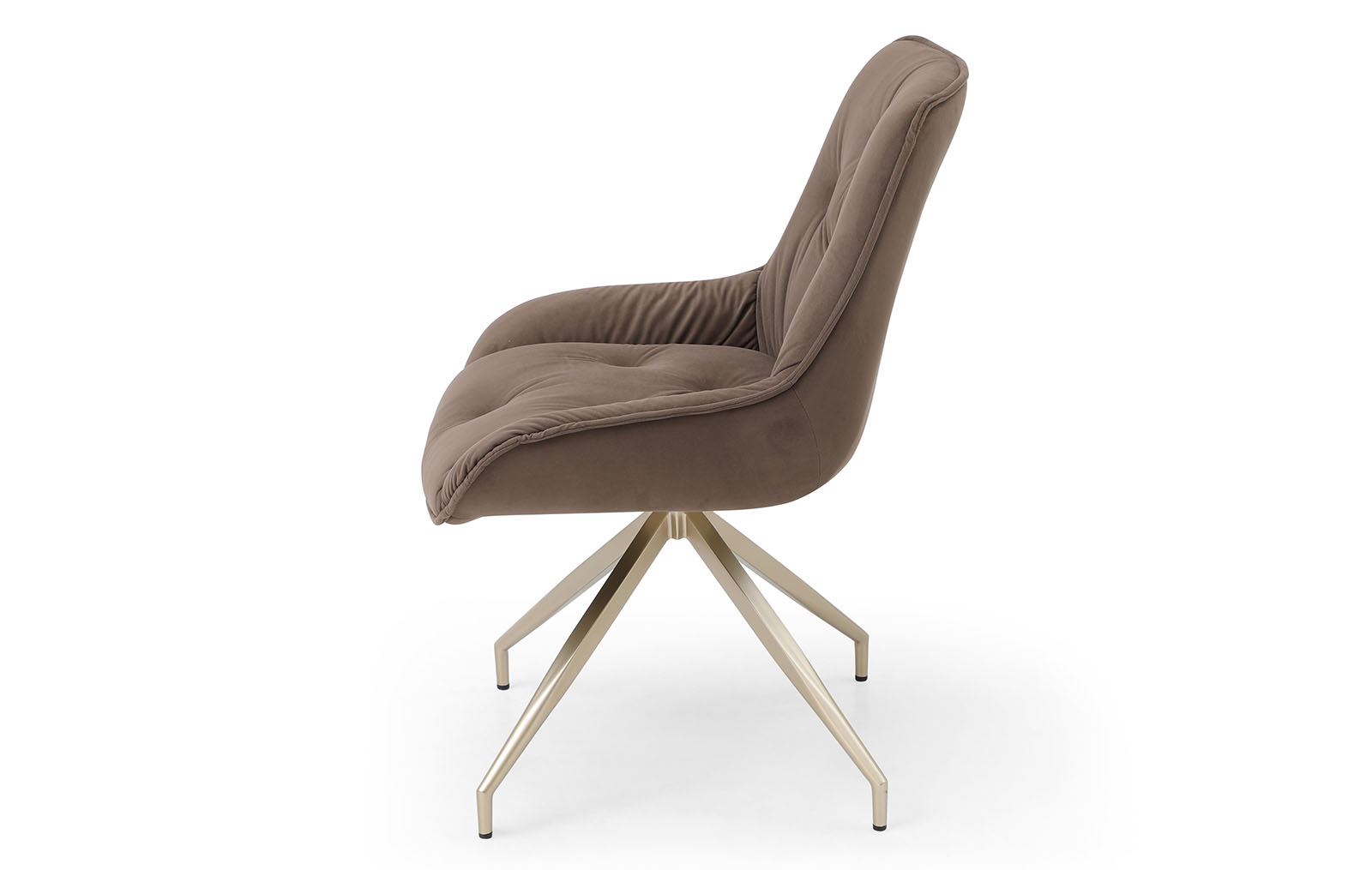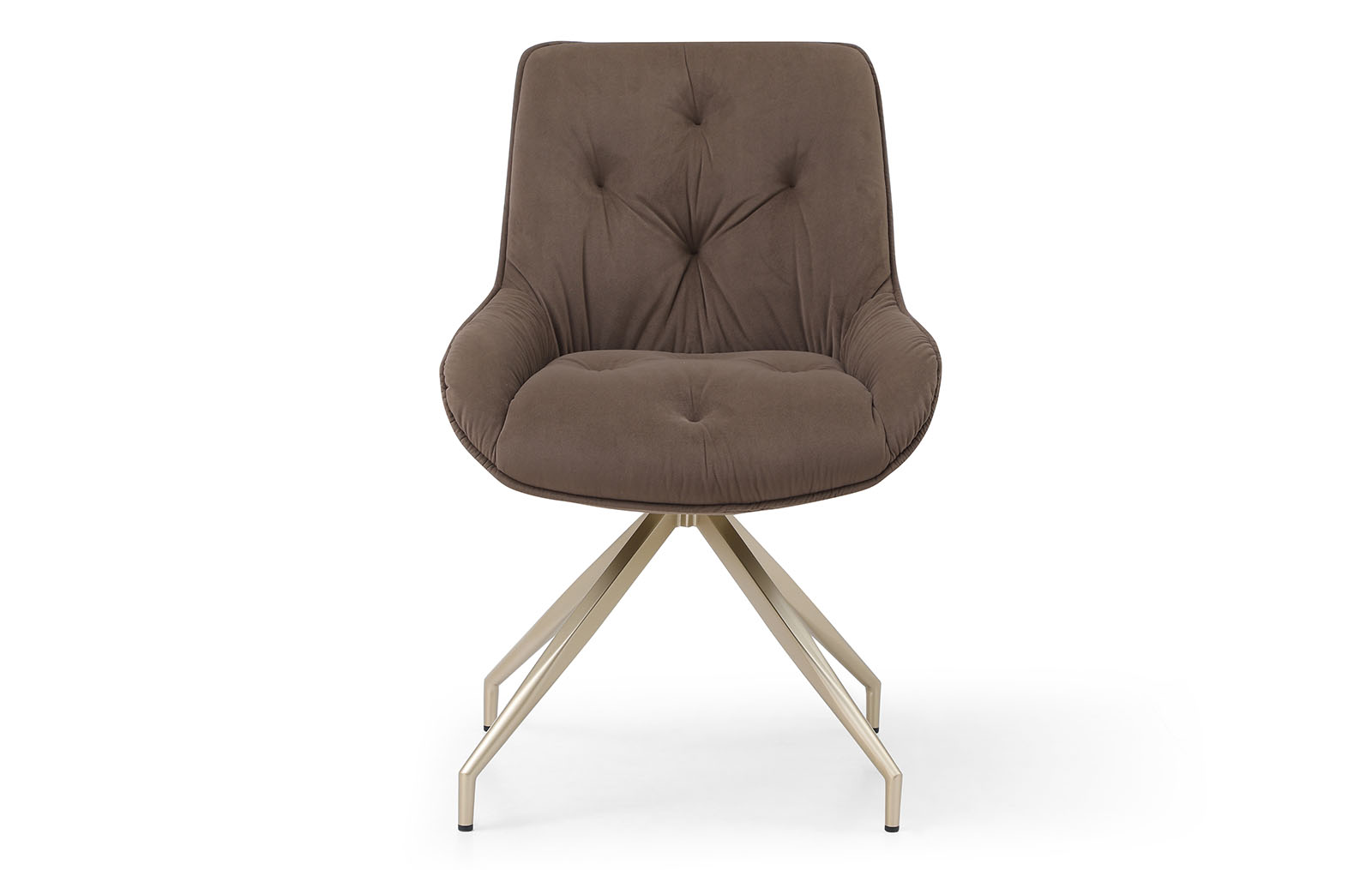 Его обивка из коричневого велюра гармонирует с металлическими ножками в цвете золотистый шампань.