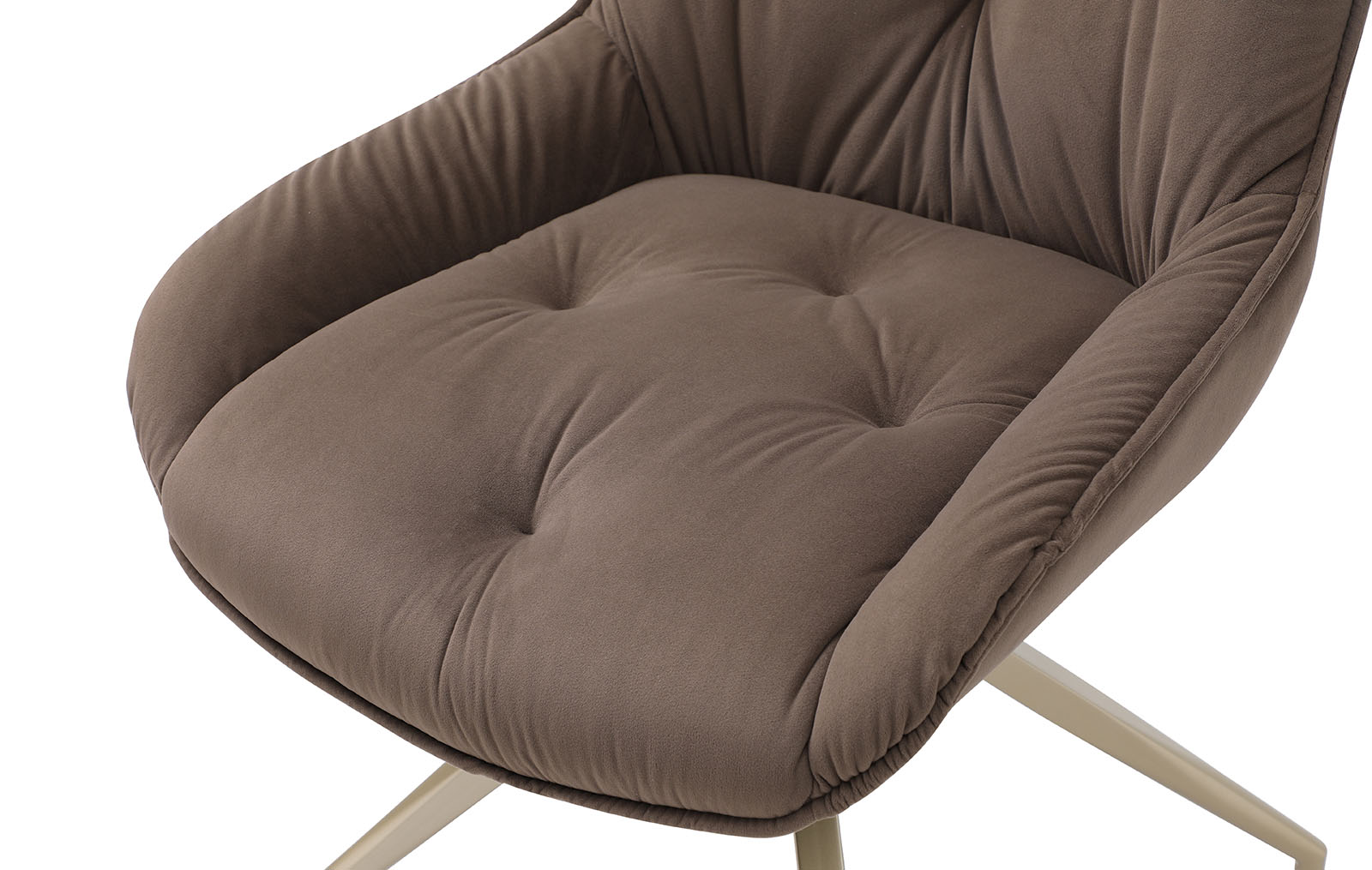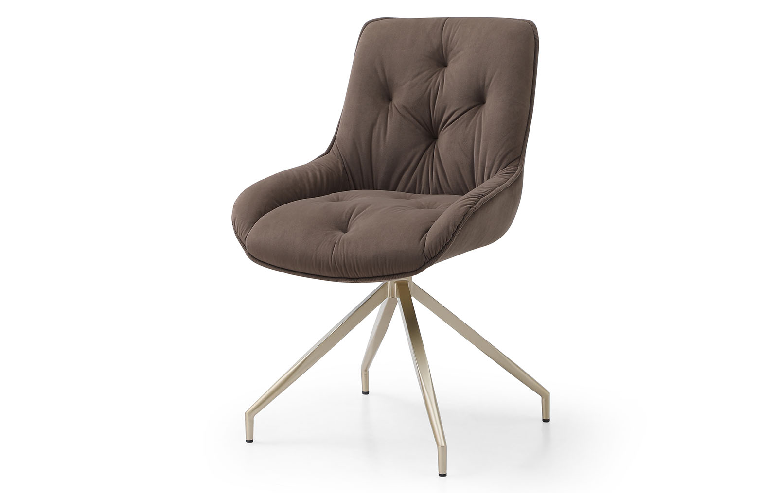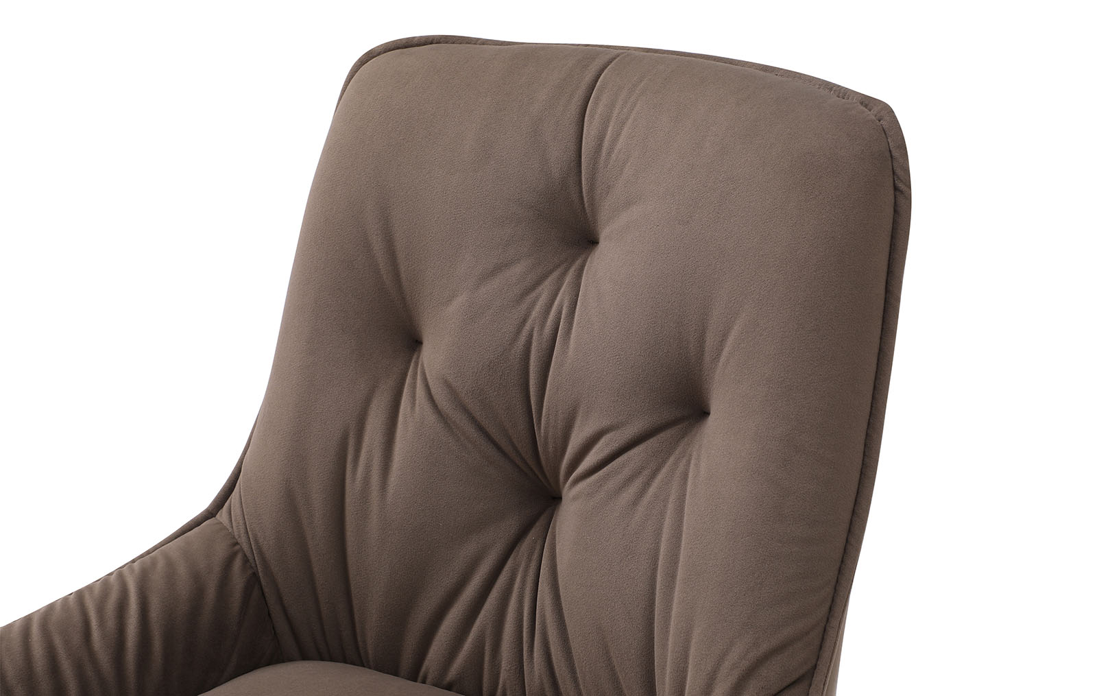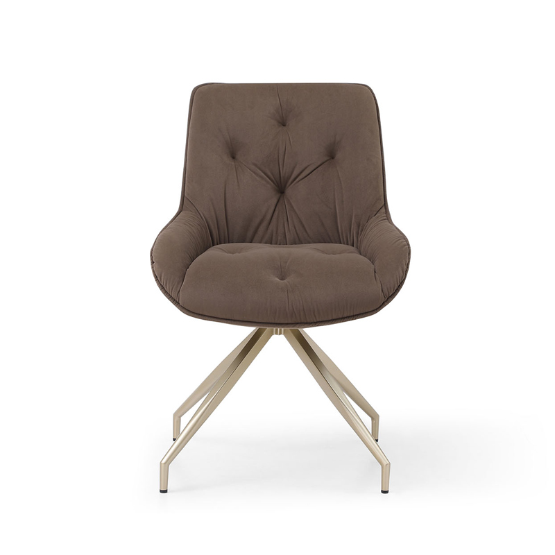 Его обивка из коричневого велюра гармонирует с металлическими ножками в цвете золотистый шампань.