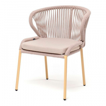 "Милан" стул плетеный из роупа, каркас алюминий (RAL1001), роуп бежевый круглый, ткань бежевая