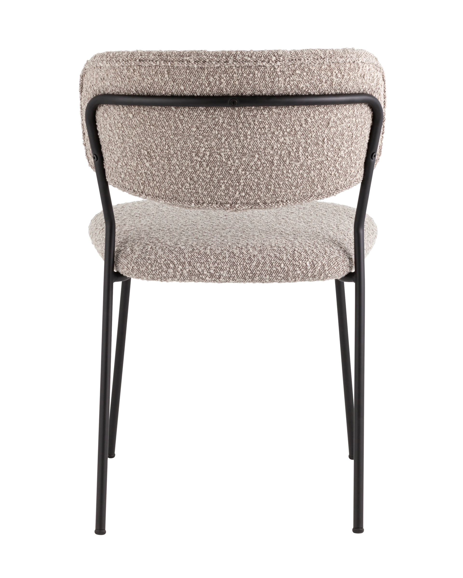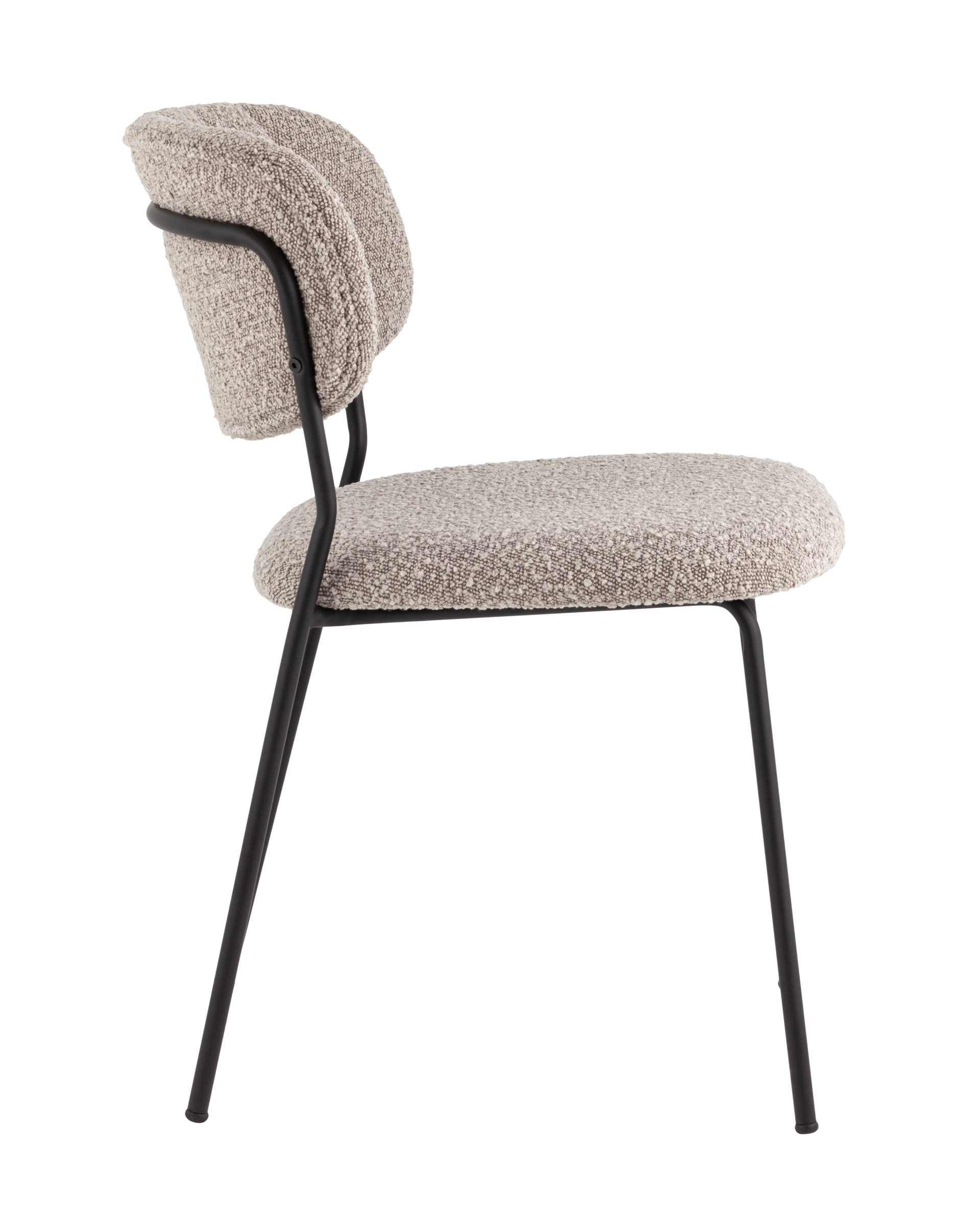 Запросить индивидуальное предложениеСовременный обеденный стул без подлокотников и металлическими ножками. Обивка выполнена из мягкой и легкой ткани букле. Красивый и очень мягкий материал, который оставляет ощущение теплоты и уюта. Металлический каркас черного цвета огибает спинку и плавно переходит из подлокотников в ножки. Широкое сиденье обеспечивает удобную посадку и уют. На подлокотниках для дополнительного комфорта предусмотрены мягкие накладки.