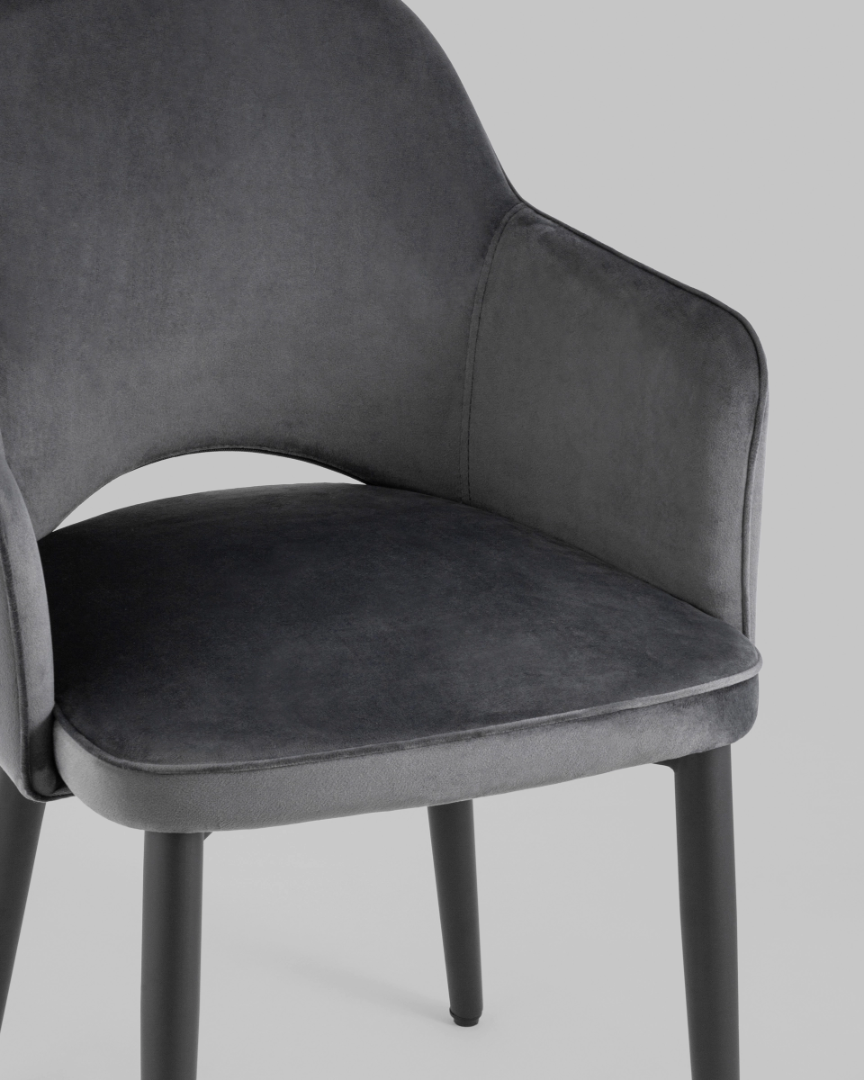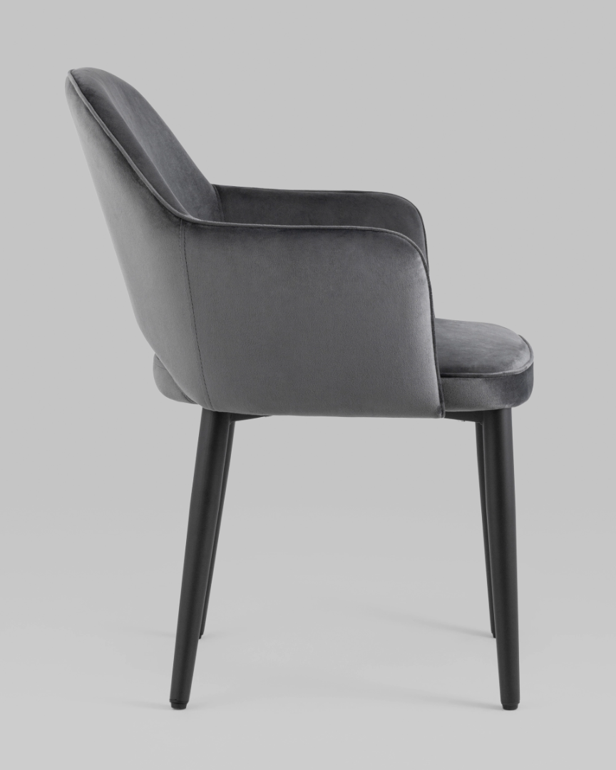Запросить индивидуальное предложениеИнтересное сочетание современного дизайна и вневременной мебельной классики. Обивка из мебельной велюровой ткани, мягкой, бархатистой и очень приятной на ощупь. Мебельная ткань велюр - очень практичная и устойчивая к истиранию. Ножки: металлические, черного цвета.
