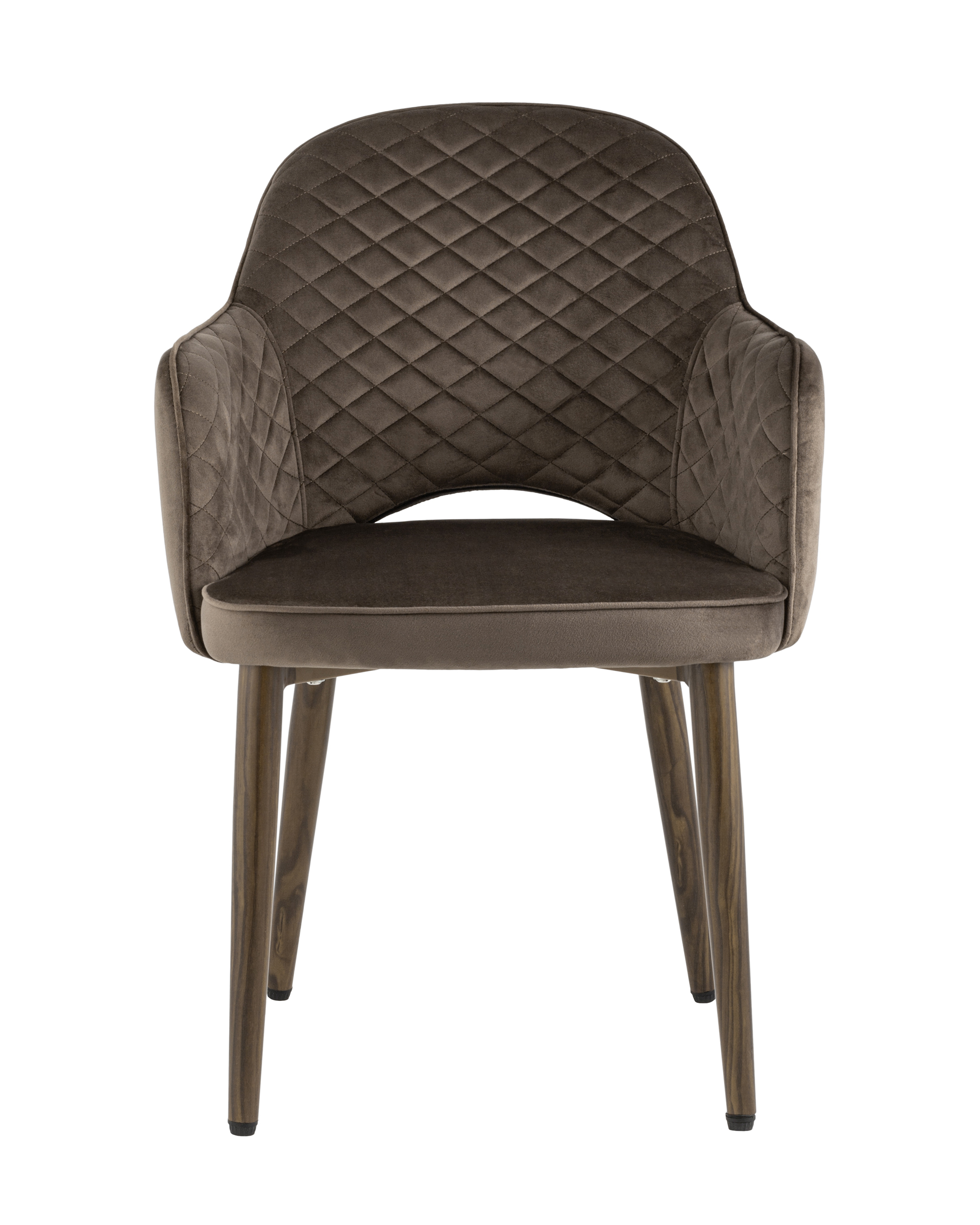 Запросить индивидуальное предложениеМягкий стул с округлой спинкой анатомической формы и удобными подлокотниками подарит комфорт и уют. В качестве обивки используется велюр - прочный износостойкий материал. Внутренняя сторона спинки и подлокотников украшена декором в виде ромбов. Высота подлокотников от пола - 64,5 см.