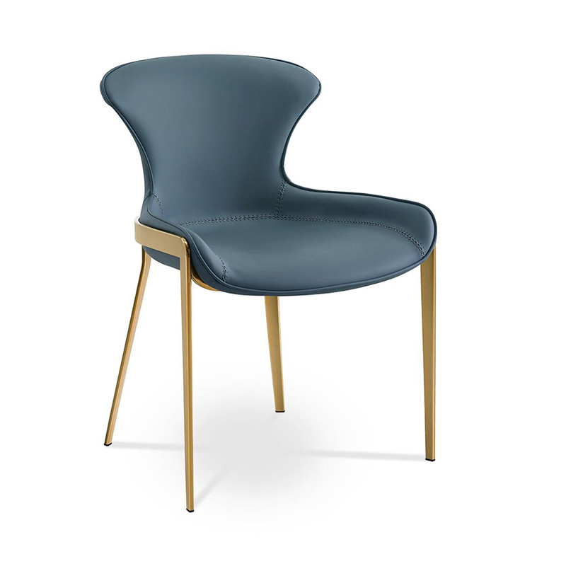 Запросить индивидуальное предложениеВ основе стула – прочная рама золотого цвета из нержавеющей стали. Прочная и легкая в уходе обивка - из качественной серо-голубой экокожи.
