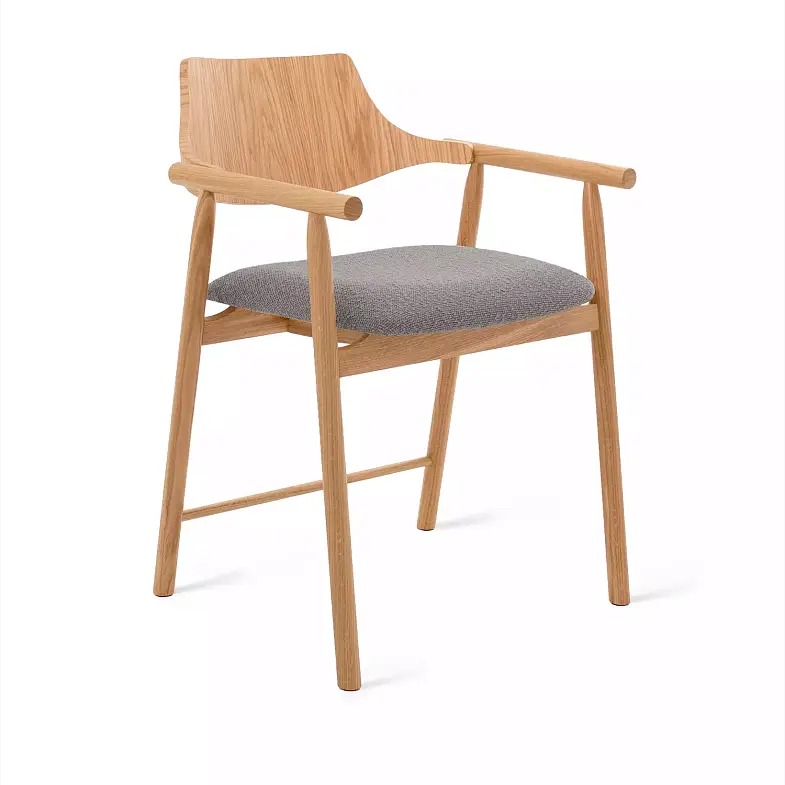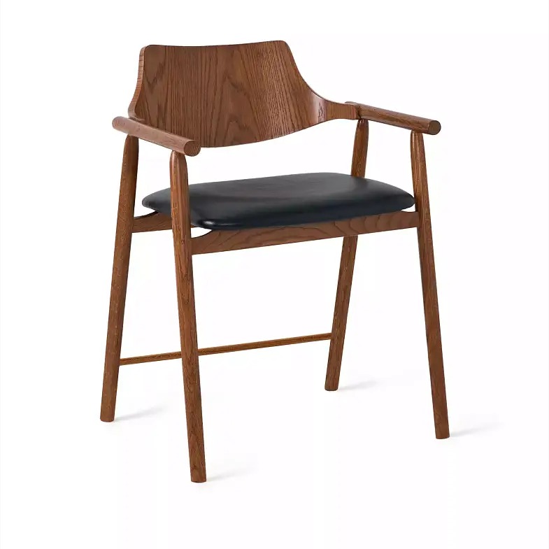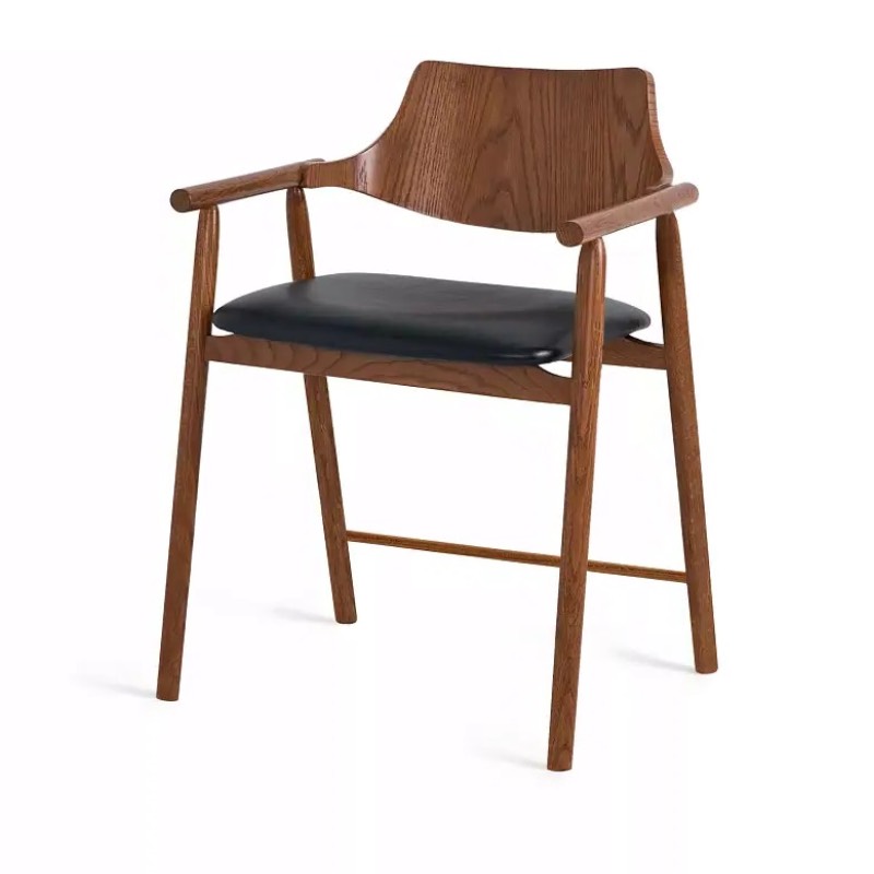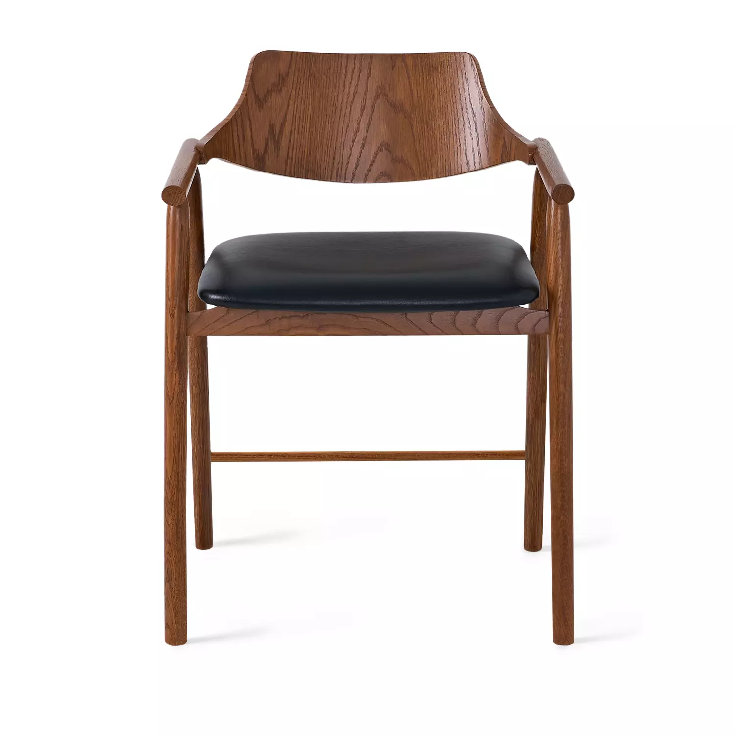 Стул с подлокотниками Viggo, дуб натуральный, кожа, черный
