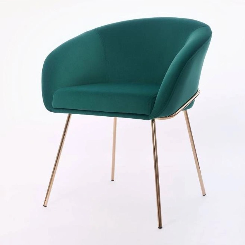 Стул с подлокотниками Tiffany, микровелюр зеленый, опоры золото