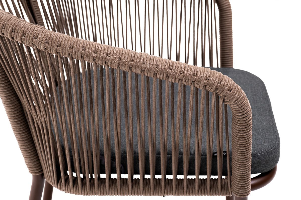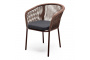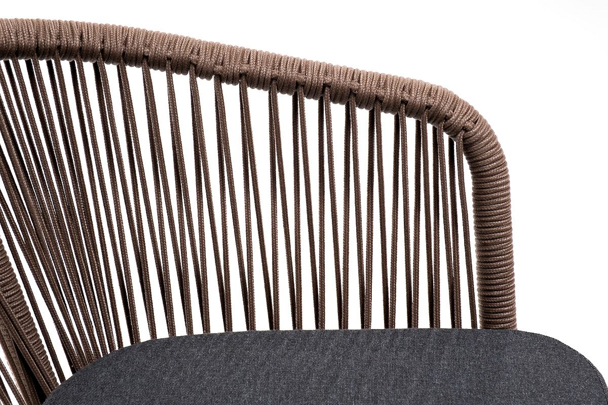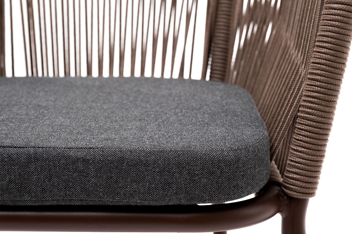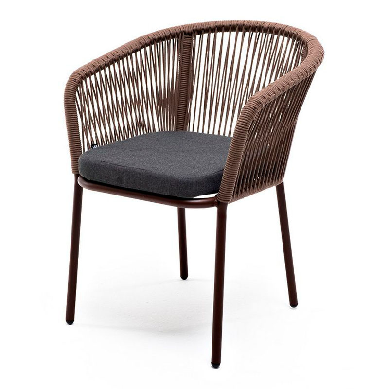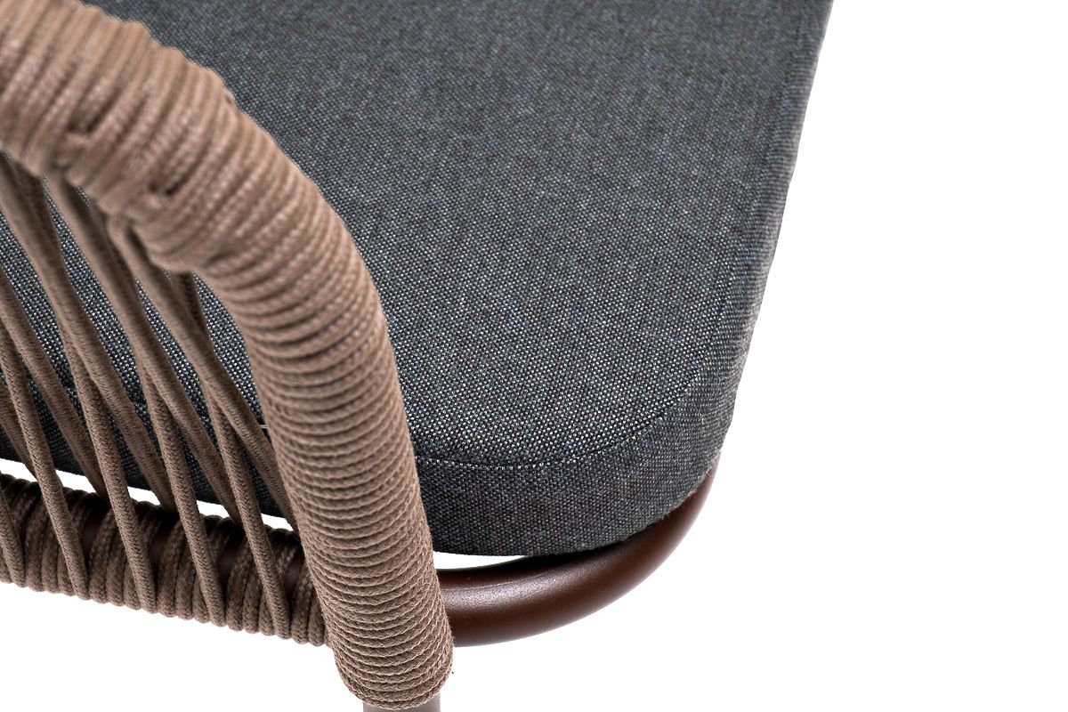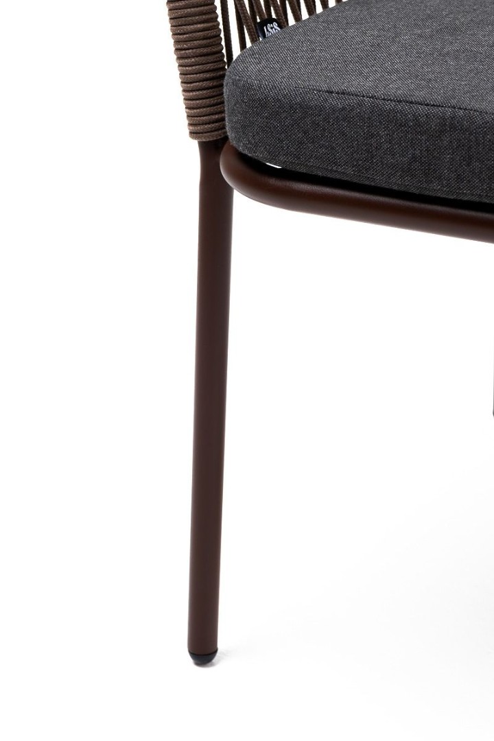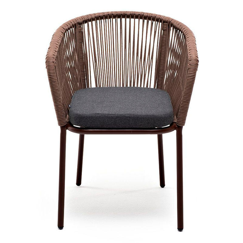 "Марсель" стул плетеный из роупа, каркас алюминий коричневый (RAL8016) муар, роуп коричневый круглый, ткань темно-серая 027