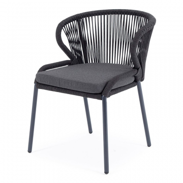 "Милан" стул плетеный из роупа, каркас алюминий темно-серый (RAL7024) муар, роуп темно-серый круглый, ткань темно-серая 027