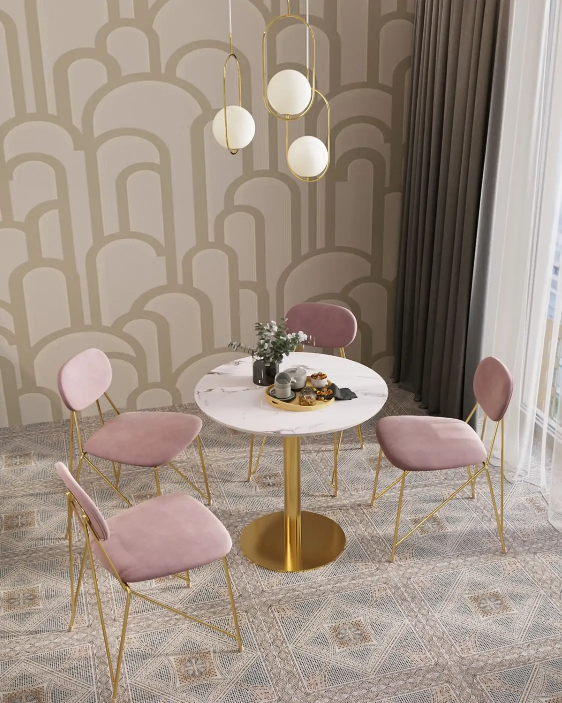 Запросить индивидуальное предложениеСтильный стул с оригинальной формой ножек и каркаса. В качестве обивки используется мягкий велюр. Украшает модель металлический каркас золотого цвета. Широкое сиденье обеспечивает удобную посадку и уют.