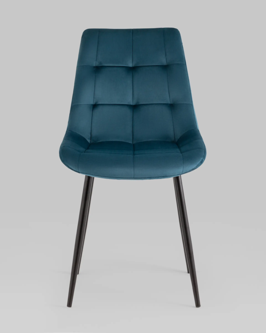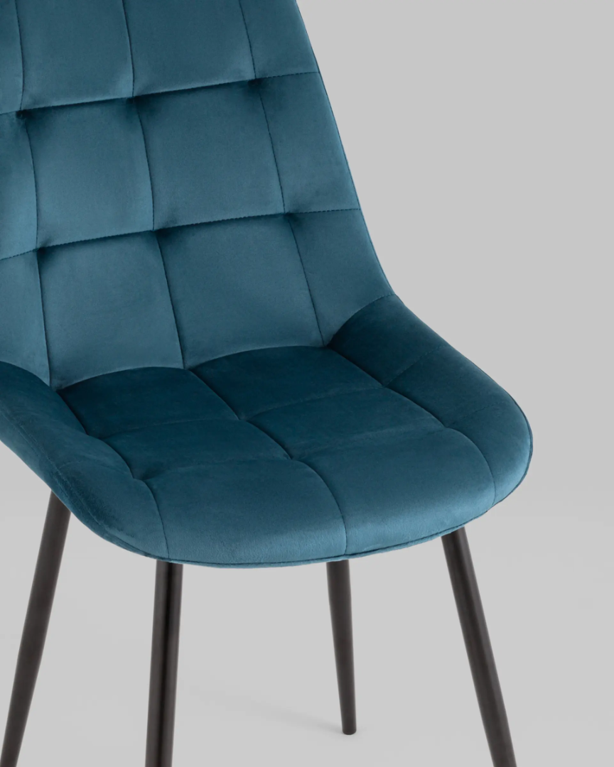 Классический обеденный стул без подлокотников на металлических ножках плоской формы. Мягкая обивка выполнена из велюра - прочного, износостойкого и приятного на ощупь материала. Внутренняя сторона сиденья и спинки украшена геометричной строчкой.