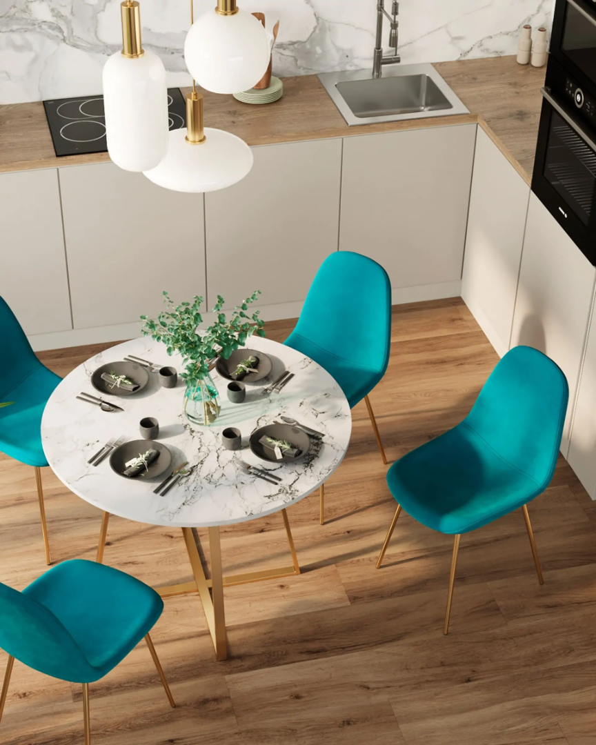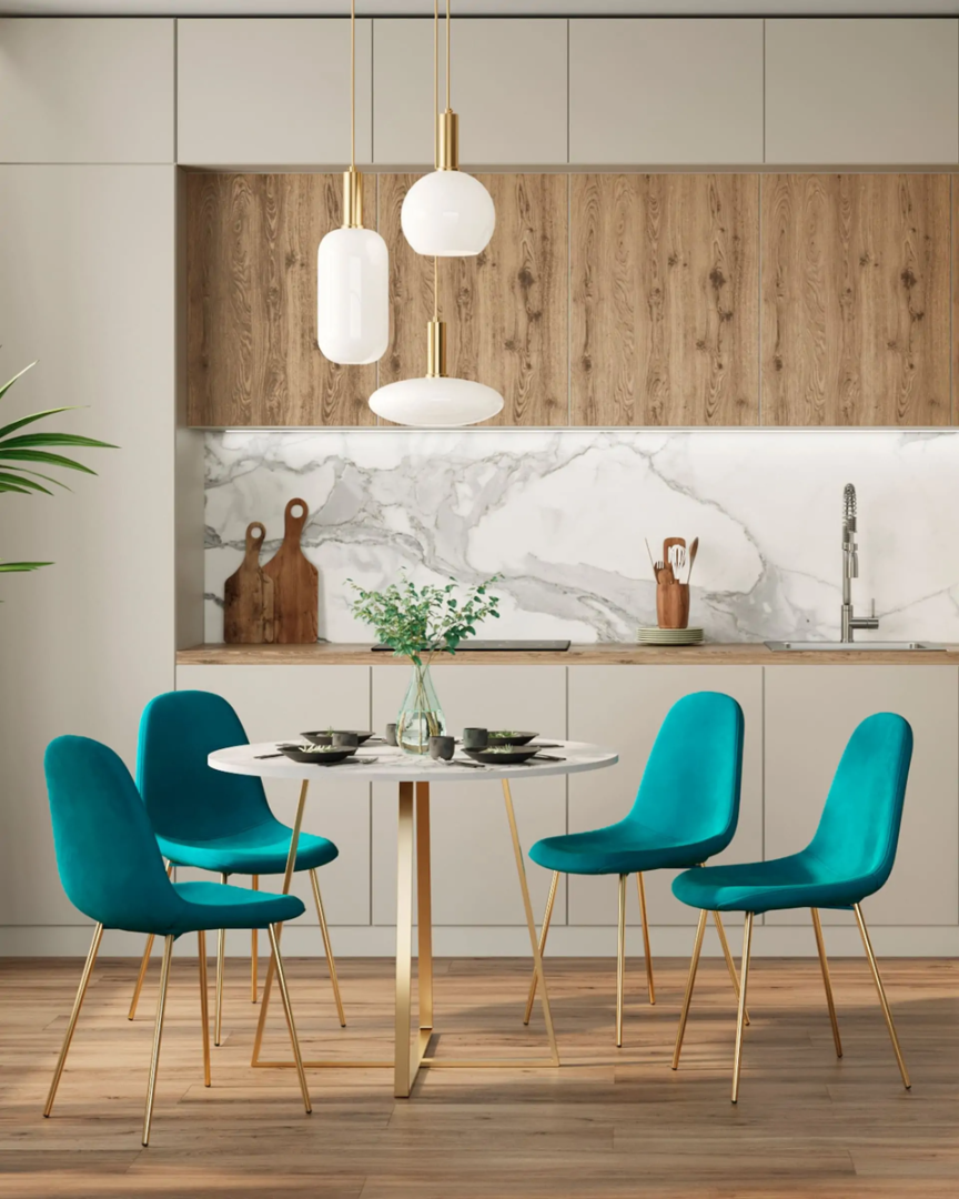 Комплект стульев Валенсия SN велюр аквамарин золотые ножки 4 шт