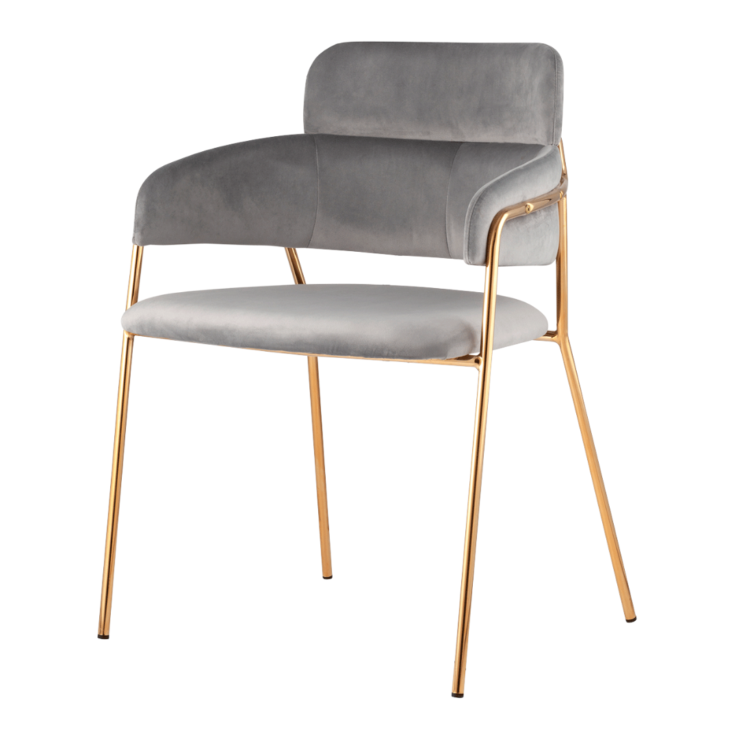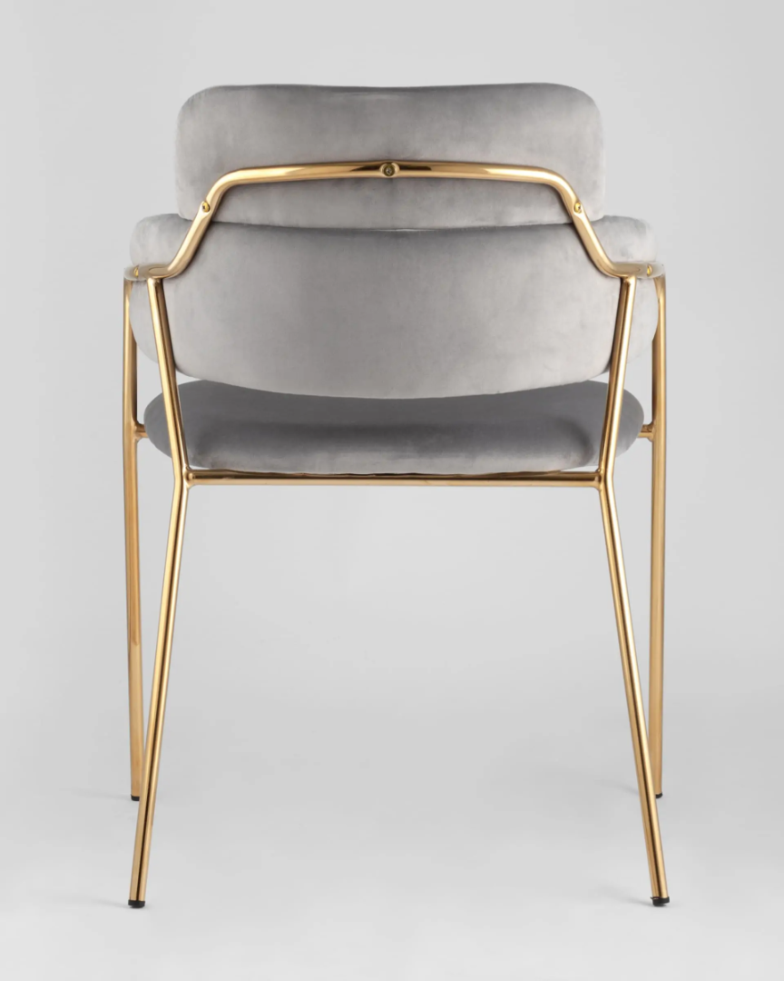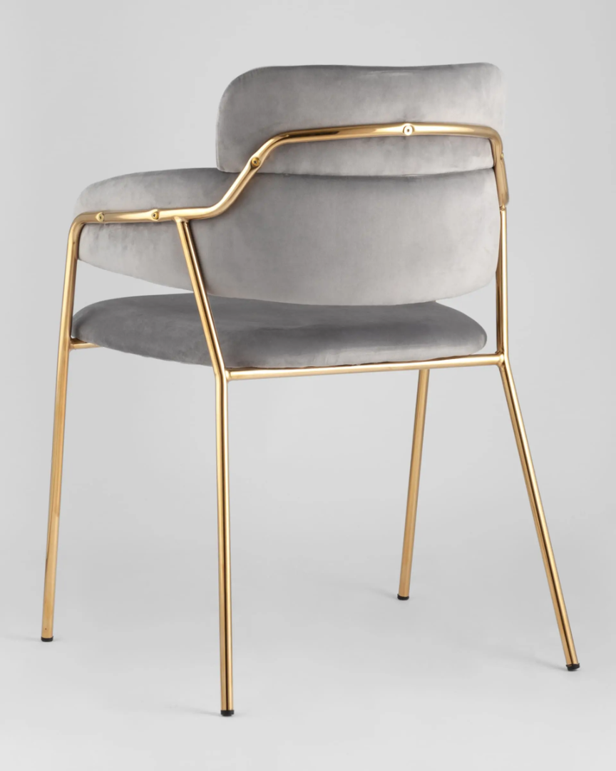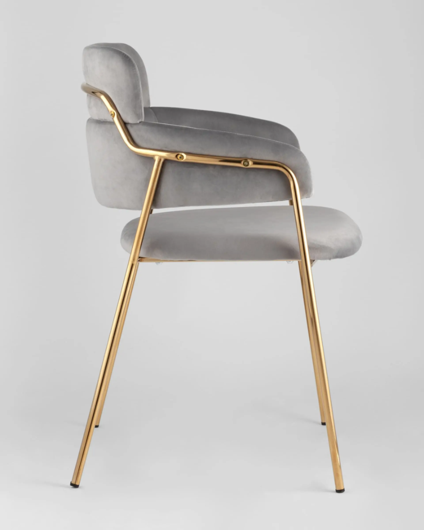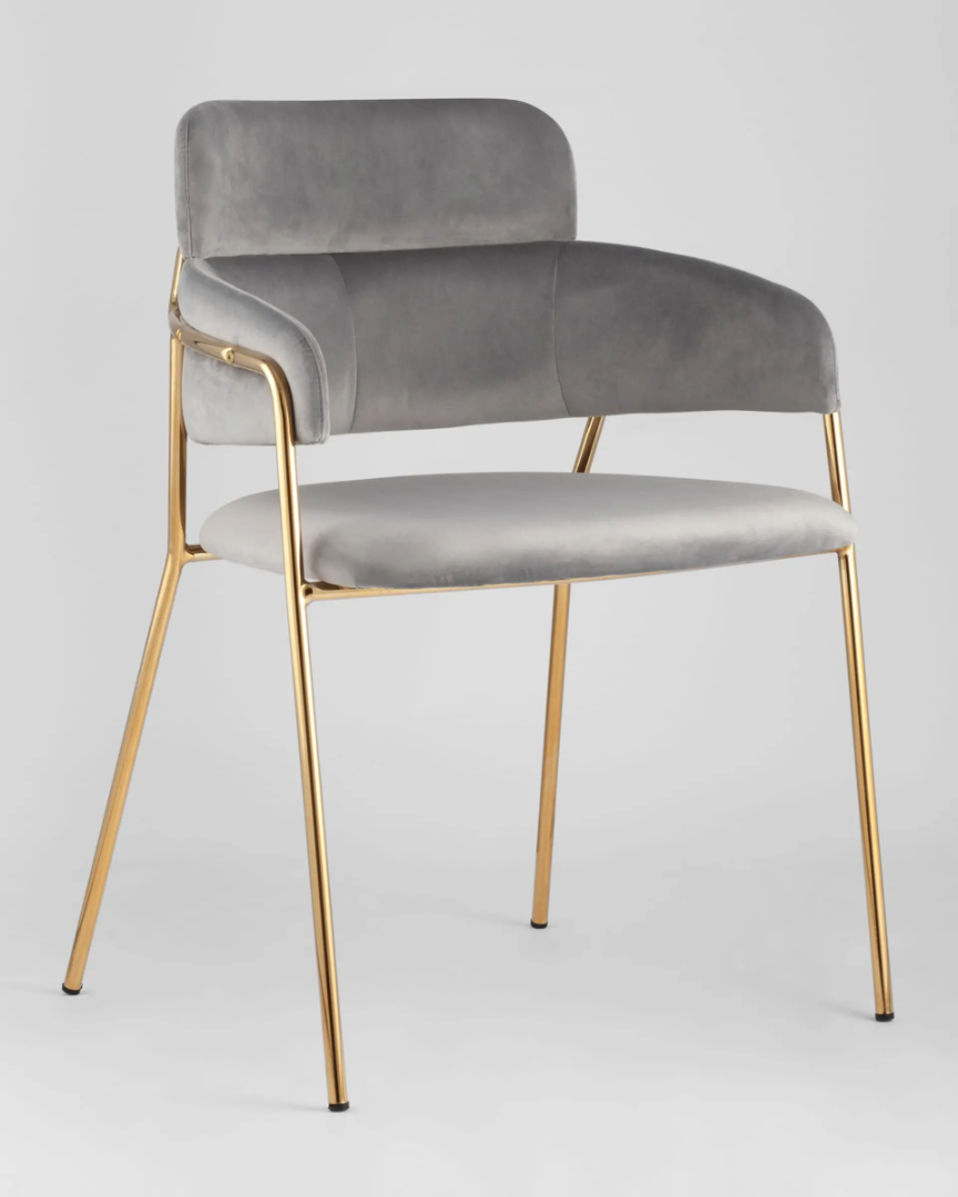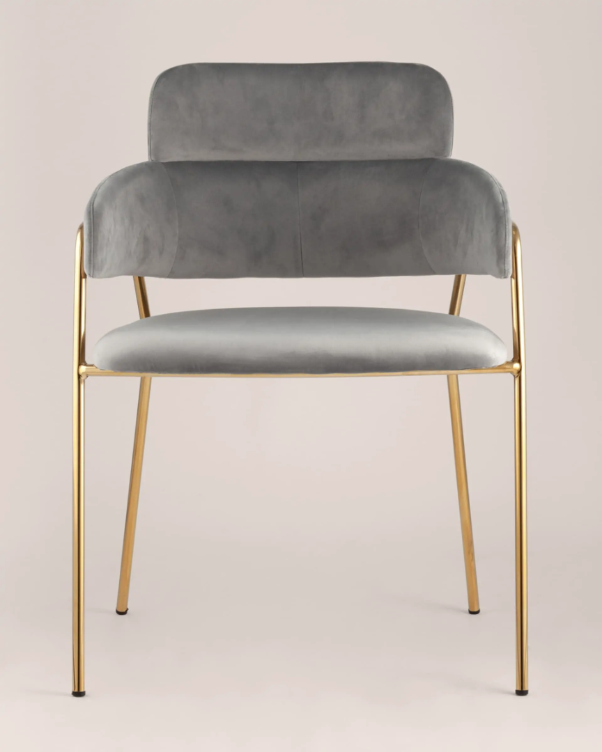 Запросить индивидуальное предложениеСтильный стул с оригинальной формой спинки, высокой поддержкой и подлокотниками. В качестве обивки используется мягкий велюр. Металлический каркас золотого цвета огибает спинку и выступает аккуратным акцентом модели. Широкое сиденье обеспечивает удобную посадку и уют.