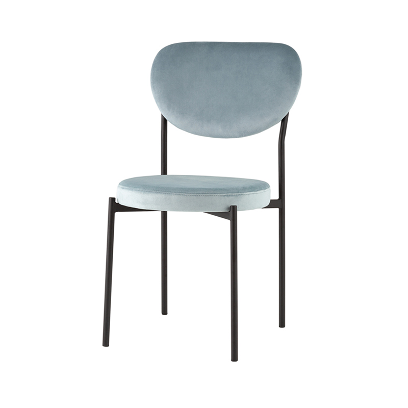 Обивка выполнена из прочного износостойкого велюра, ножки изготовлены из металла в черном цвете. На ножках дополнительно предусмотрены специальные подпятники, которые предотвращают скольжение и повреждение напольного покрытия.