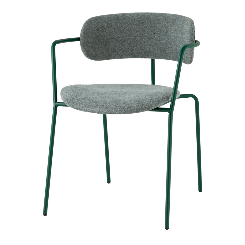 Запросить индивидуальное предложениеИзящный стул с комфортным сиденьем и спинкой. Обивка выполнена из прочной ткани с мягким ворсом в стиле букле, необычная фактура и мягкость добавляют стулу больше уюта.