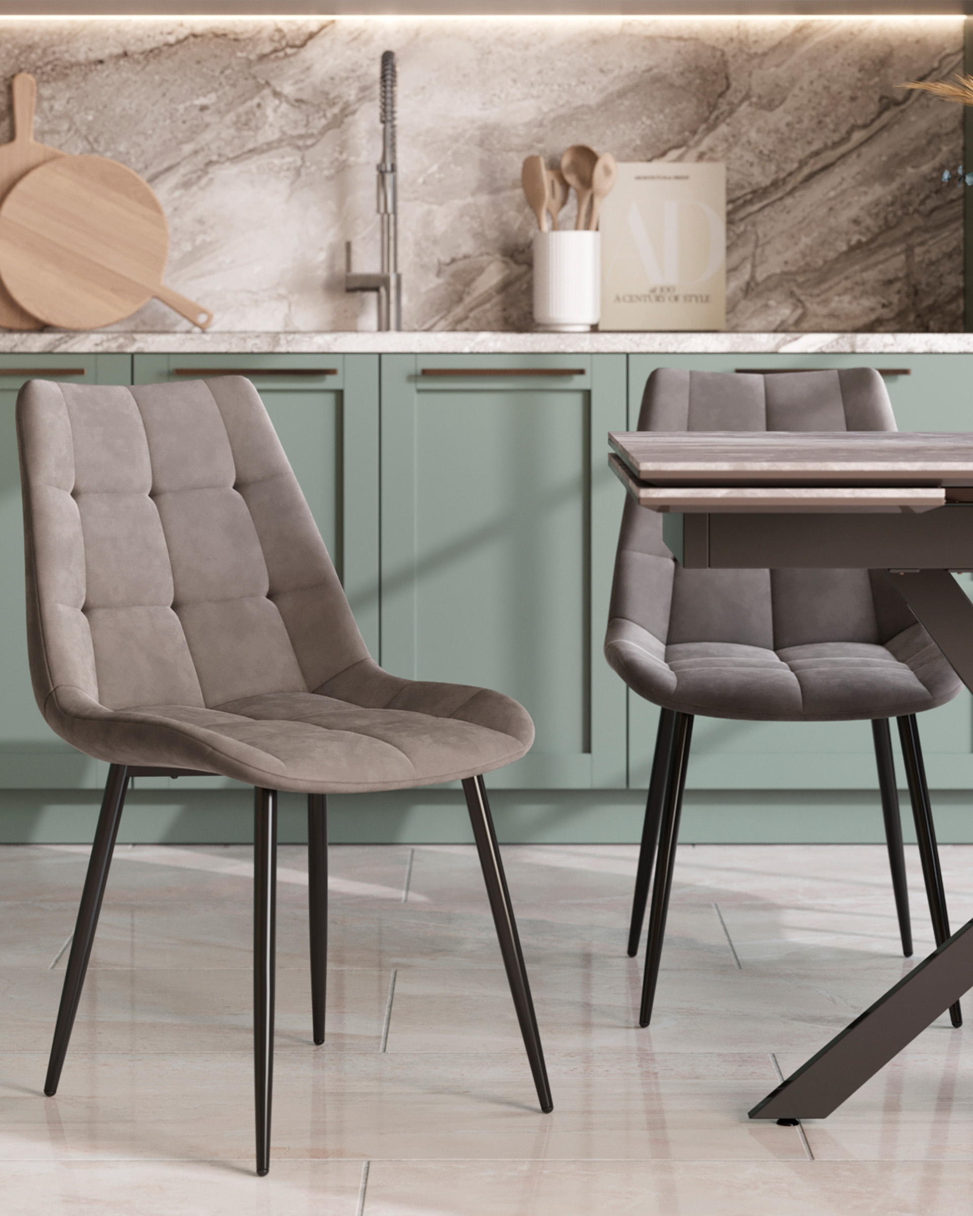 Запросить индивидуальное предложениеКухонный стул в мягкой обивке из велюра без подлокотников. Анатомическая форма сиденья обеспечивает удобство, а декоративная стяжка придает объём и защищает от образования вмятин. Металлические ножки с крестовидным каркасом выдерживают значительные нагрузки. Подпятники ножек не испортят напольное покрытие и предохраняют от скольжения. Лаконичный дизайн украсит любой кухонный интерьер.