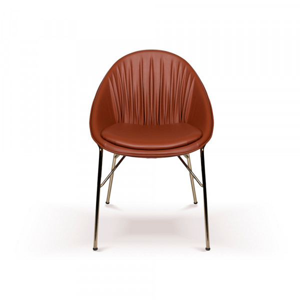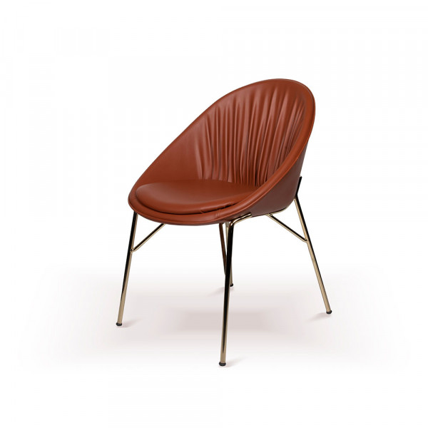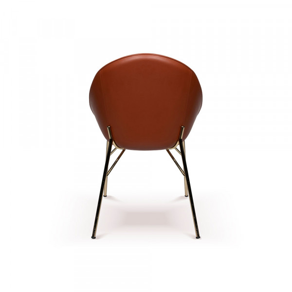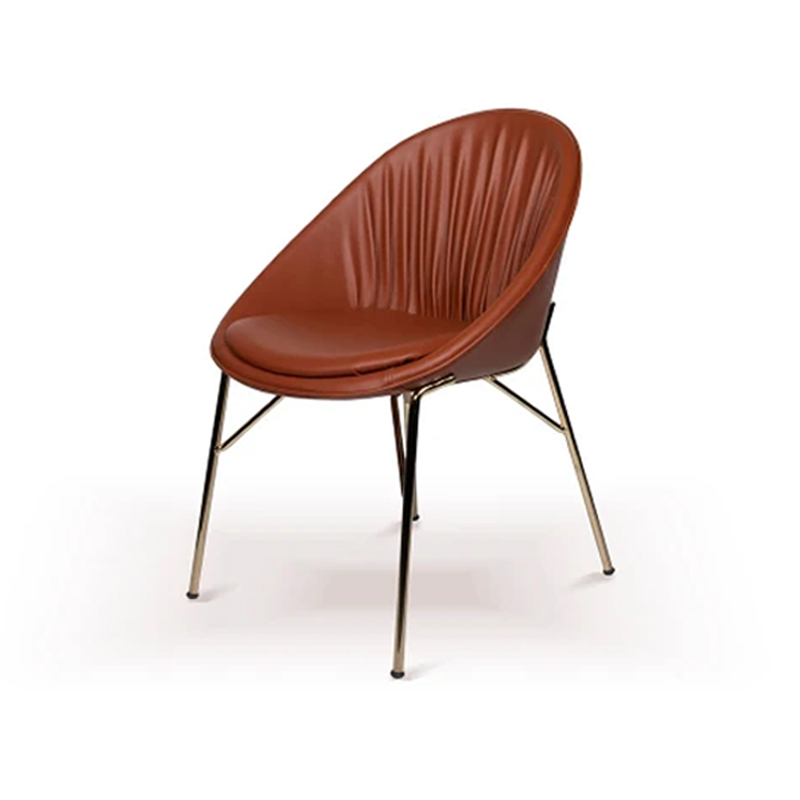 Запросить индивидуальное предложениеОбеденный стул Tura в ретро стиле 60-х органично впишется в любой интерьер от современной классики до Лофта. Каркас стула выполнен из металла в золотом цвете. Мягкая спинка и сидение обито фактурной кожей с деликатной драпировкой складками на спинке. Металлические ножки имеют конусную форму.Вы можете подобрать оттенок тонировки дерева и выбрать фактуру и расцветку ткани для мягкой обивки, которая подойдёт в ваш проект.