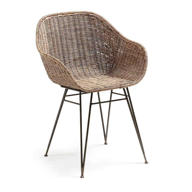Кресло из ротанга. Ножки из металла с натуральным лакированным покрытием. Для внутреннего и наружного использования под навесом.