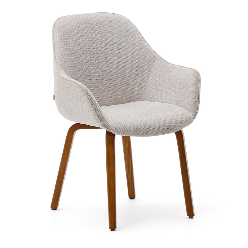 Aleli Стул из бежевой синели и ножками из ясеня с отделкой под орех
