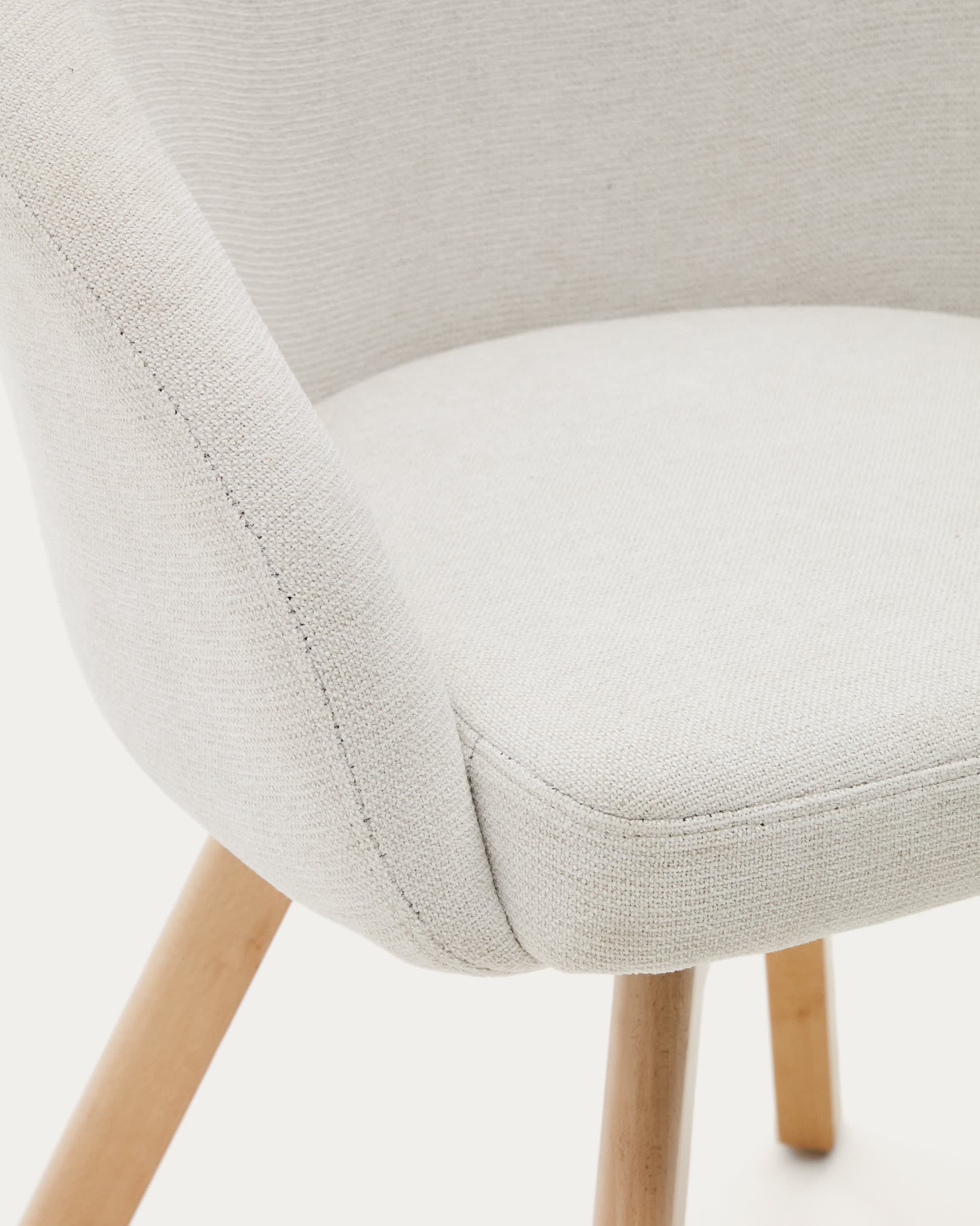 Кресло сборное, состоит из цельного сиденья в тканевой обивке и деревянной стойки из массива ясеня. Древесина имеет натуральную отделку, которая защищает от влаги и других негативных внешних воздействий.