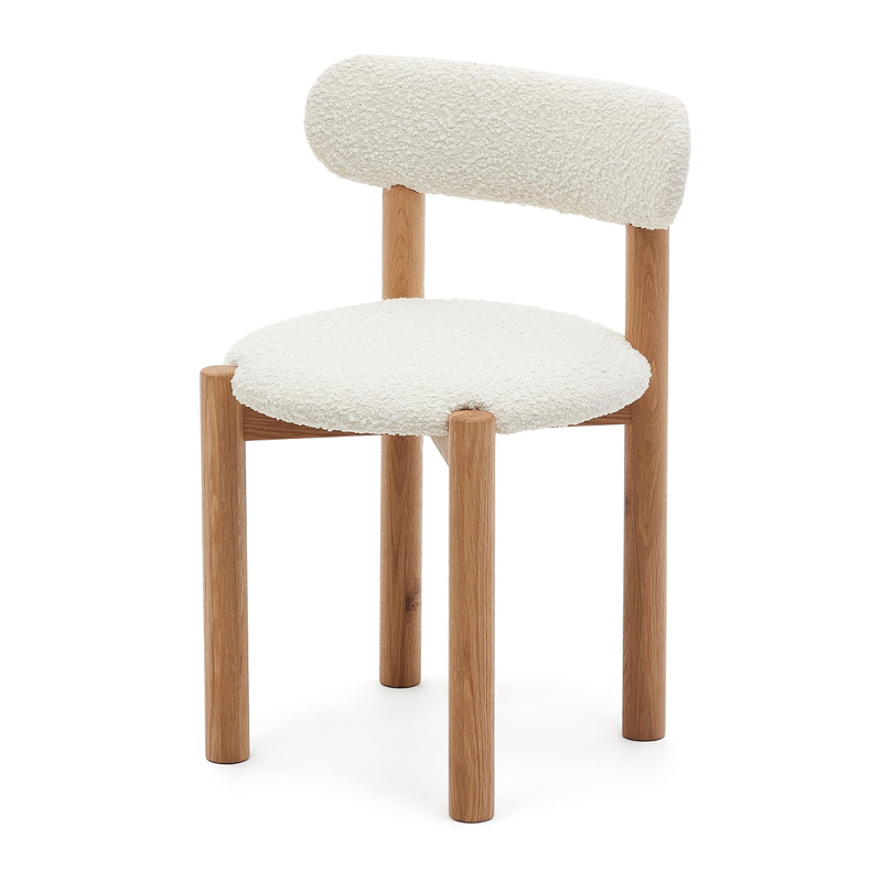 Nebai Стул из белой ткани букле и массива дуба с натуральной отделкой